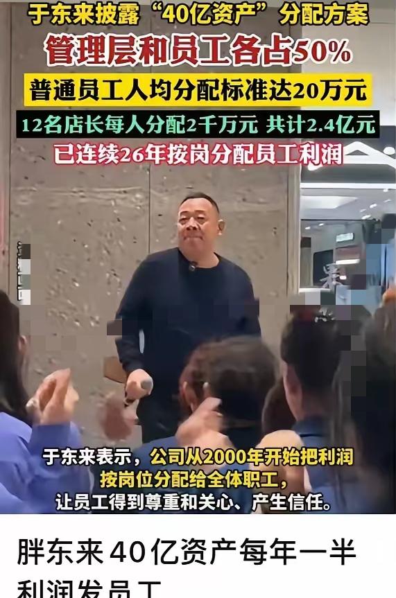 胖东来40亿资产每年一半利润发员工 真的被胖东来这波操作惊到了!于东来直接把40亿资产的分配方案摆到台面上,管理层和员工各占一半,普通员工人均能分到20万,12位店长更是每人2000万,这手笔谁看了不迷糊。 更绝的是,从2000年开始,他们就坚持按岗位给全体员工分利润,这一坚持就是26年。不是偶尔发个红包,是把“让员工被尊重、被信任”刻进了骨子里。 现在好多企业都在喊“以人为本”,但真能把一半利润掏出来给员工的,屈指可数。胖东来不是靠画饼,是实打实让员工共享发展成果,也难怪大家愿意拼尽全力。 这种把员工当家人的模式,才是真正的长期主义吧?既留得住人,也攒得住口碑。 换作是你,会更愿意待在这种舍得分钱的公司,还是只谈理想不谈钱的企业?