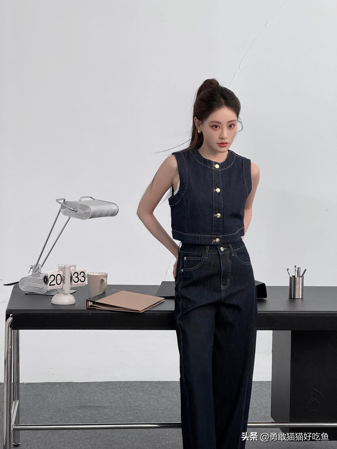 刘亦菲这条裤子挺养生,毕竟降温了肚脐眼必须护住啊