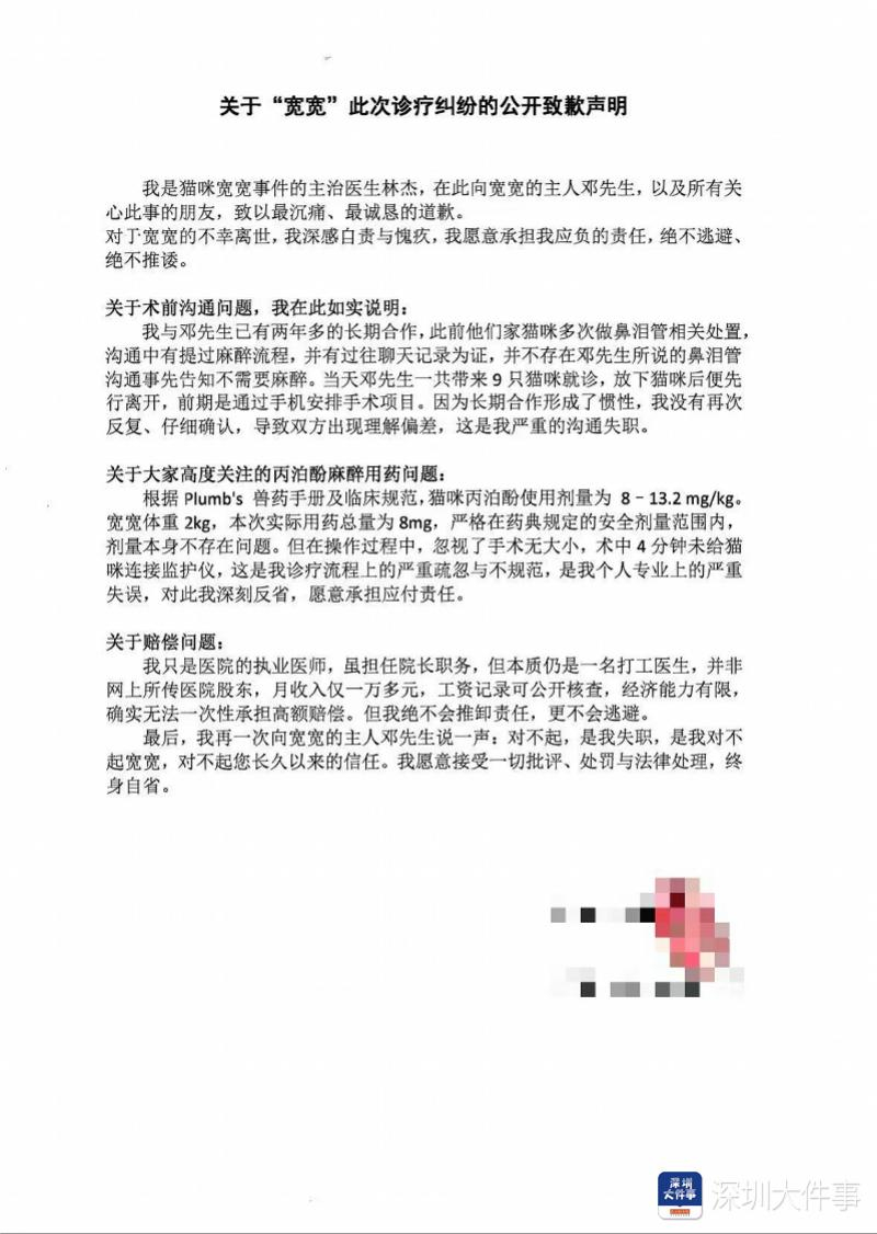 #网红小猫宽宽离世宠物医院停业整顿#【深圳网红猫因医疗事故去世,院方:已停业整顿】#深圳网红猫宽宽因医疗事故离世##小猫宽宽去世#深圳网红小猫“宽宽”因医疗事故去世的消息,近日在互联网上引发关注。近日,涉事医院公开回应称,医院已全面停业整顿,涉事医生为院长,被撤职,将配合相关部门调查,后期承担相应责任。