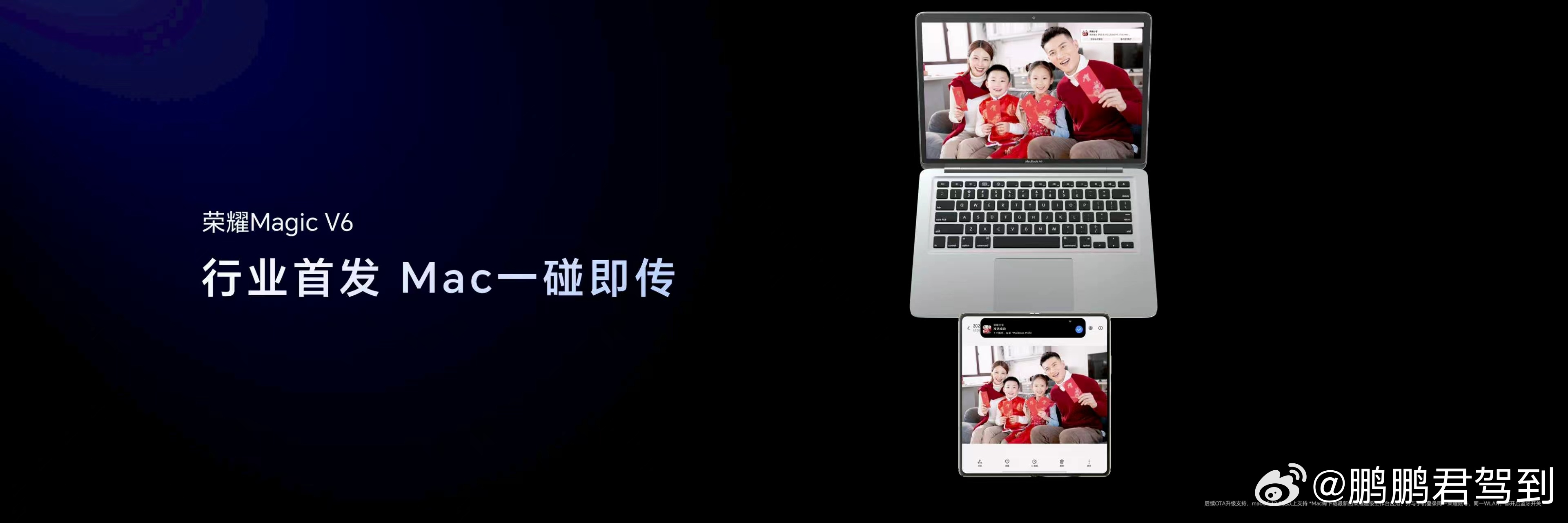荣耀Magic V6是Mac的折叠屏好搭子。通过行业首发的Mac一碰即传,并支持苹果办公三件套的编辑,展开秒变Mac扩展屏,还能一键登录iCloud查看相册。此外,还支持AirPods原生级体验、Apple Watch信息共享,此外 荣耀MagicV6一键共享热点给iPhone ,无缝衔接苹果全家桶,跨生态连接不卡顿。