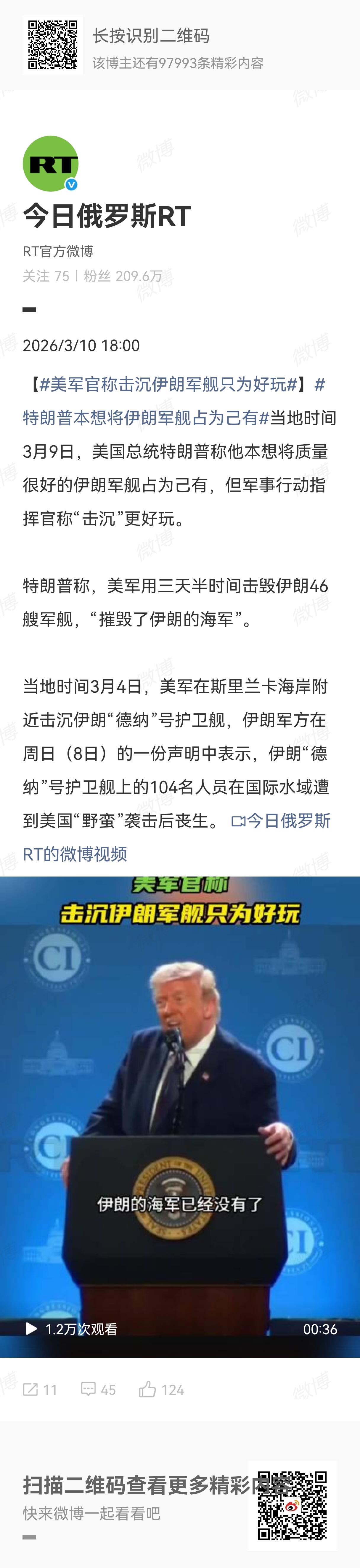 据今日俄罗斯报道:当地时间3月9日,美国总统特朗普称他本想将质量很好的伊朗军舰占为己有,但军事行动指挥官称“击沉”更好玩。如果这份报道属实的话(没有查到其他地方有相关表述),只能用“毫无人性”来形容美国人了,上至总统下到流浪汉,从上到下都毫无人性。曾经的“壕无人性”变成“毫无人性”,只能说那是一片开满毒蘑菇的神奇土地。