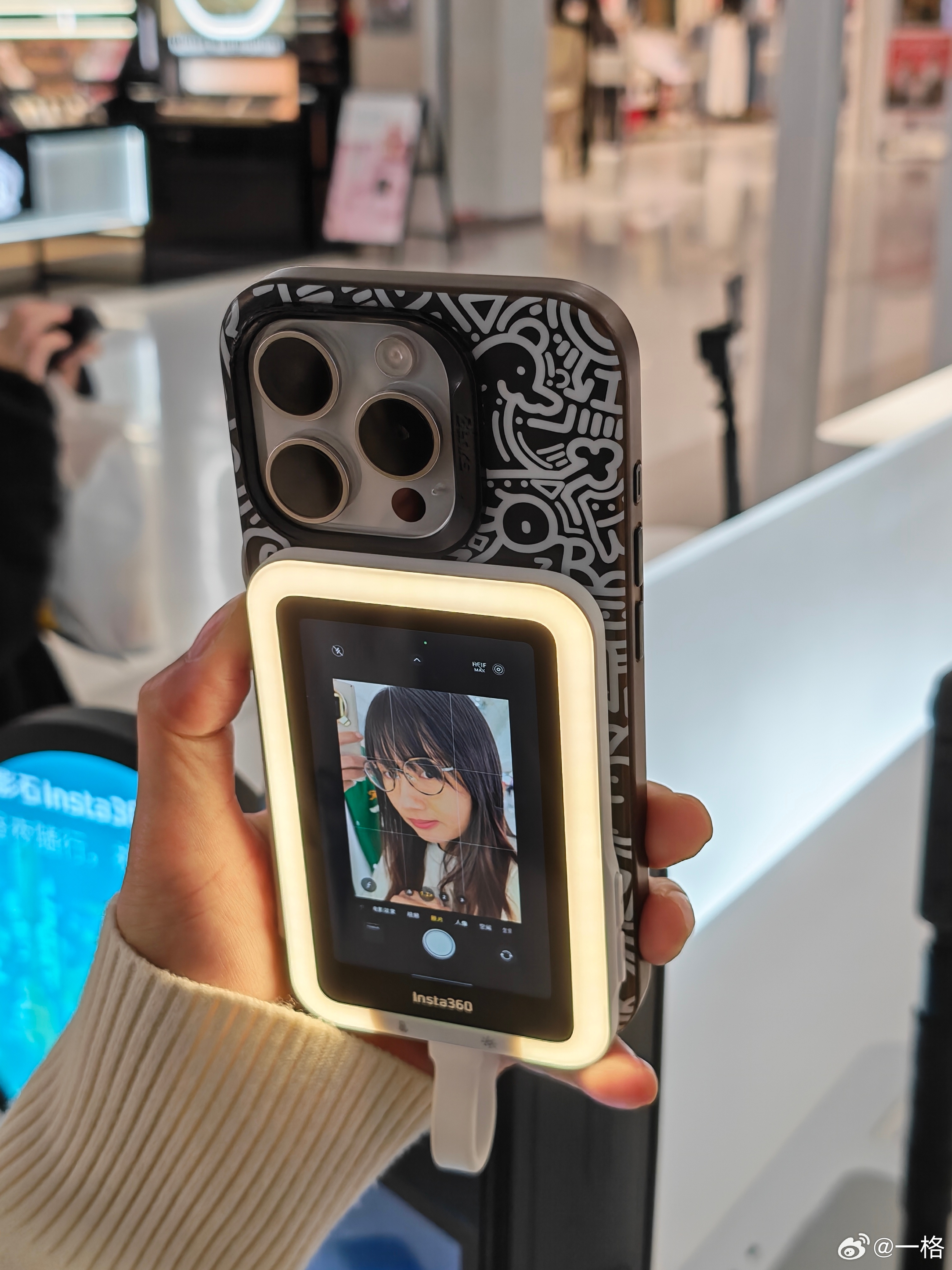 摸了摸 Insta360 的自拍屏,简单说是一块带补光灯的屏幕,通过有线连接供电,也支持触屏操作,就是刚上手不太习惯,拍照时眼神容易飘,想法还是不错的👀