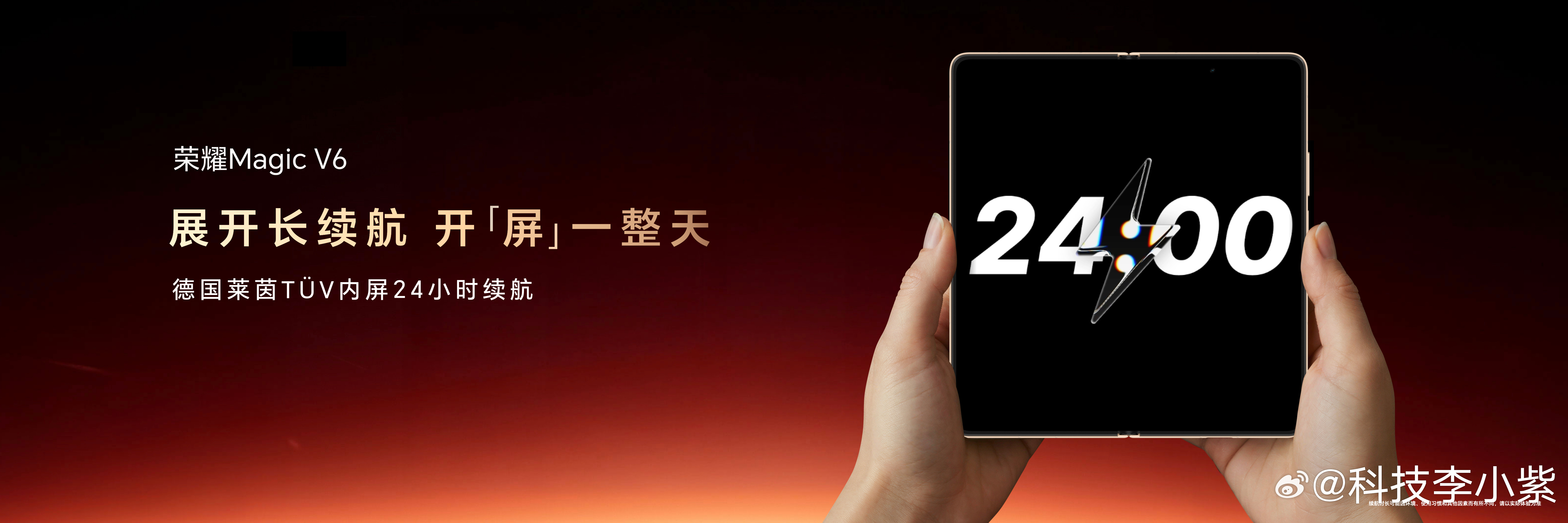 荣耀Magic V6 搭载满血八核第五代骁龙8至尊版。跨代领先的电池技术加上满血旗舰芯片,荣耀Magic V6拥有了折叠屏跨代领先的续航表现,大屏展开用也能连续使用24小时,既撑得过一个不插电的周末,也能完美应对跨国旅行。荣耀Magic V6不仅获得德国莱茵TÜV 24小时内屏续航认证,更连续霸榜折叠机续航榜单,最长续航折叠旗舰实至名归!