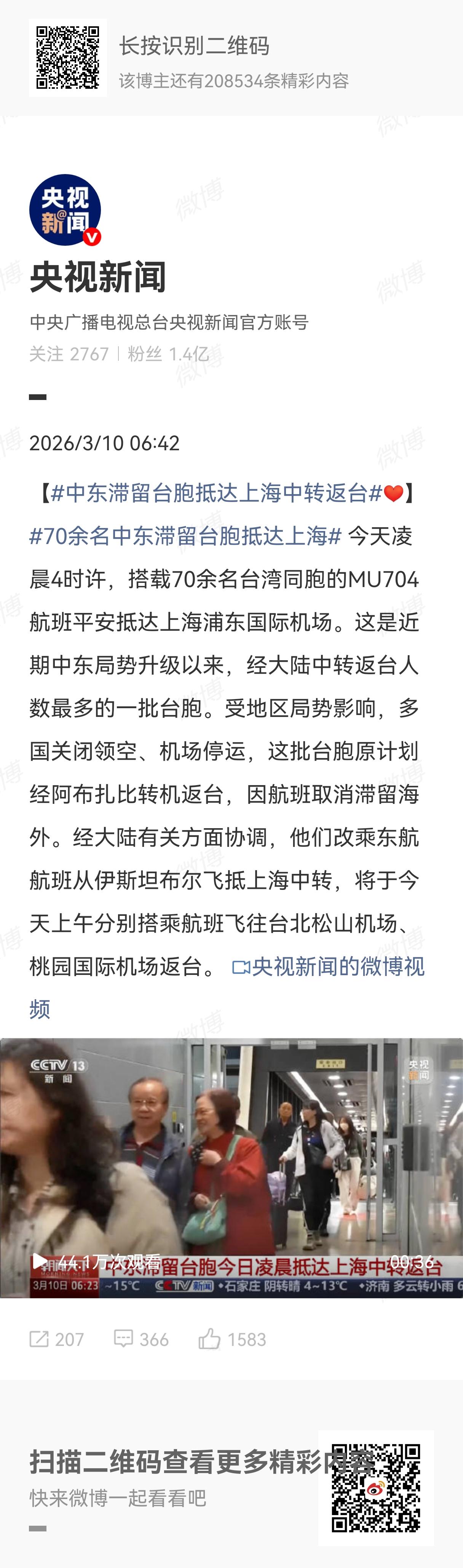 据央视新闻今日早上的消息:今天凌晨4时许,搭载70余名台湾同胞的MU704航班平安抵达上海浦东国际机场。这70多名台胞中,有20余人没有台胞证,但仍然顺利搭乘东方航空的飞机到达上海,可见关键时刻祖国一直记挂着所有台湾同胞的安危,没有将无台胞证的台湾同胞拒之门外。而这20多个人将在上海浦东机场通过快捷窗口(本次特意开设的服务窗口)不花一分钱地办理台胞证,然后和其他有台胞证的台湾同胞返回台湾的松山或台北机场。从电视画面看得出,这20多个人非常感动,纷纷表示感谢强大的祖国,到了上海就像回到家一样安心。