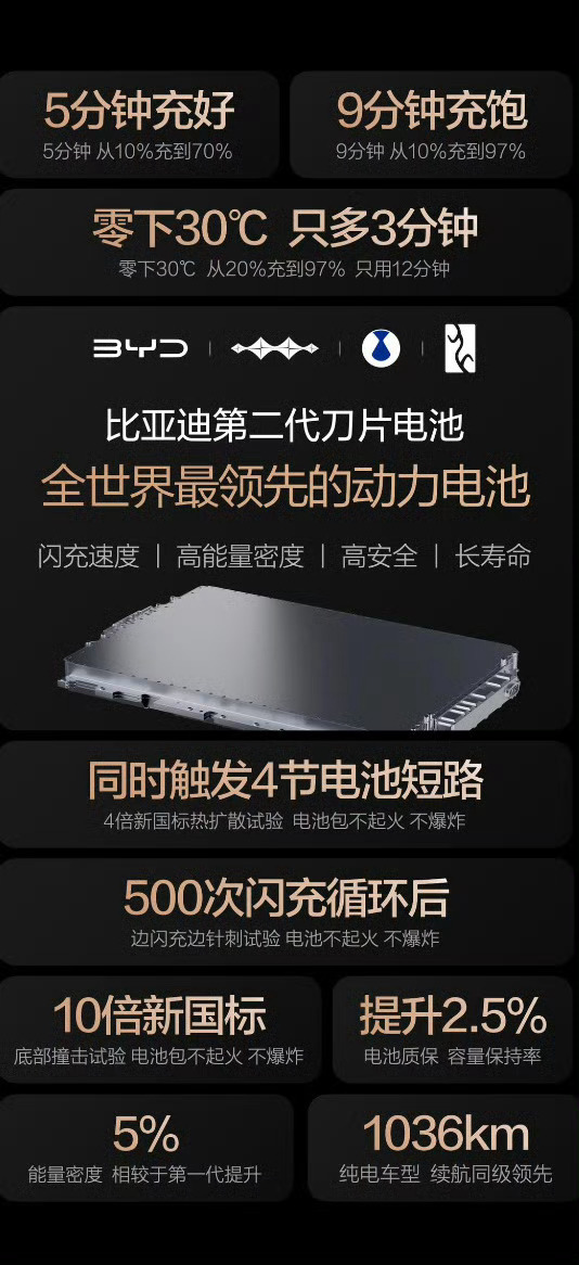 「5分好 9分饱 3分寒」,硬核闪充技术树立行业新标杆,这就是比亚迪第二代刀片电池及闪充技术,不止是全面解决新能源充电慢问题,更懂用户所想,为用户所需!