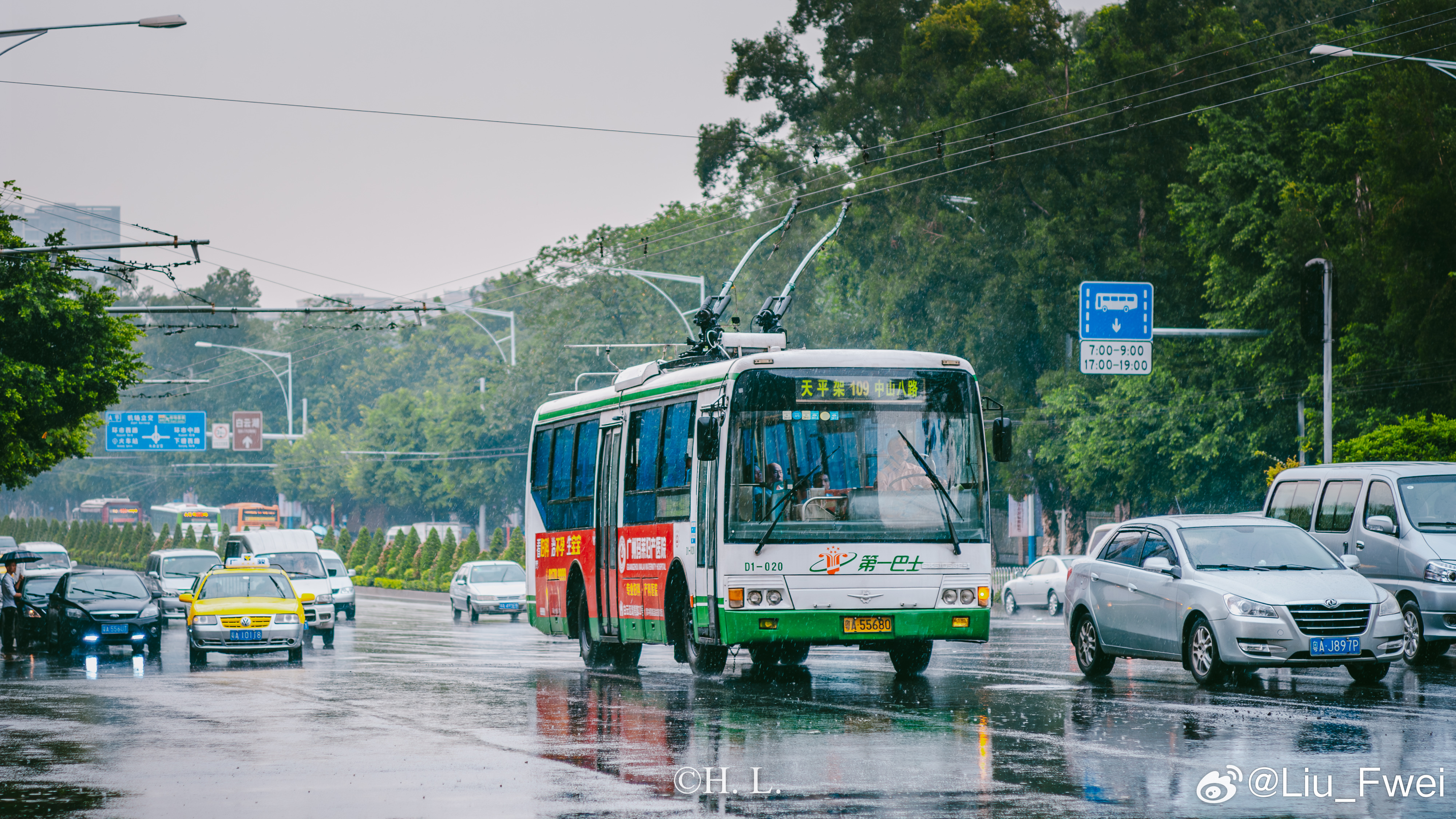 广州无轨电车109路,上海客车厂SK5105GP-1型电车,解放北路越秀公园,大雨中。