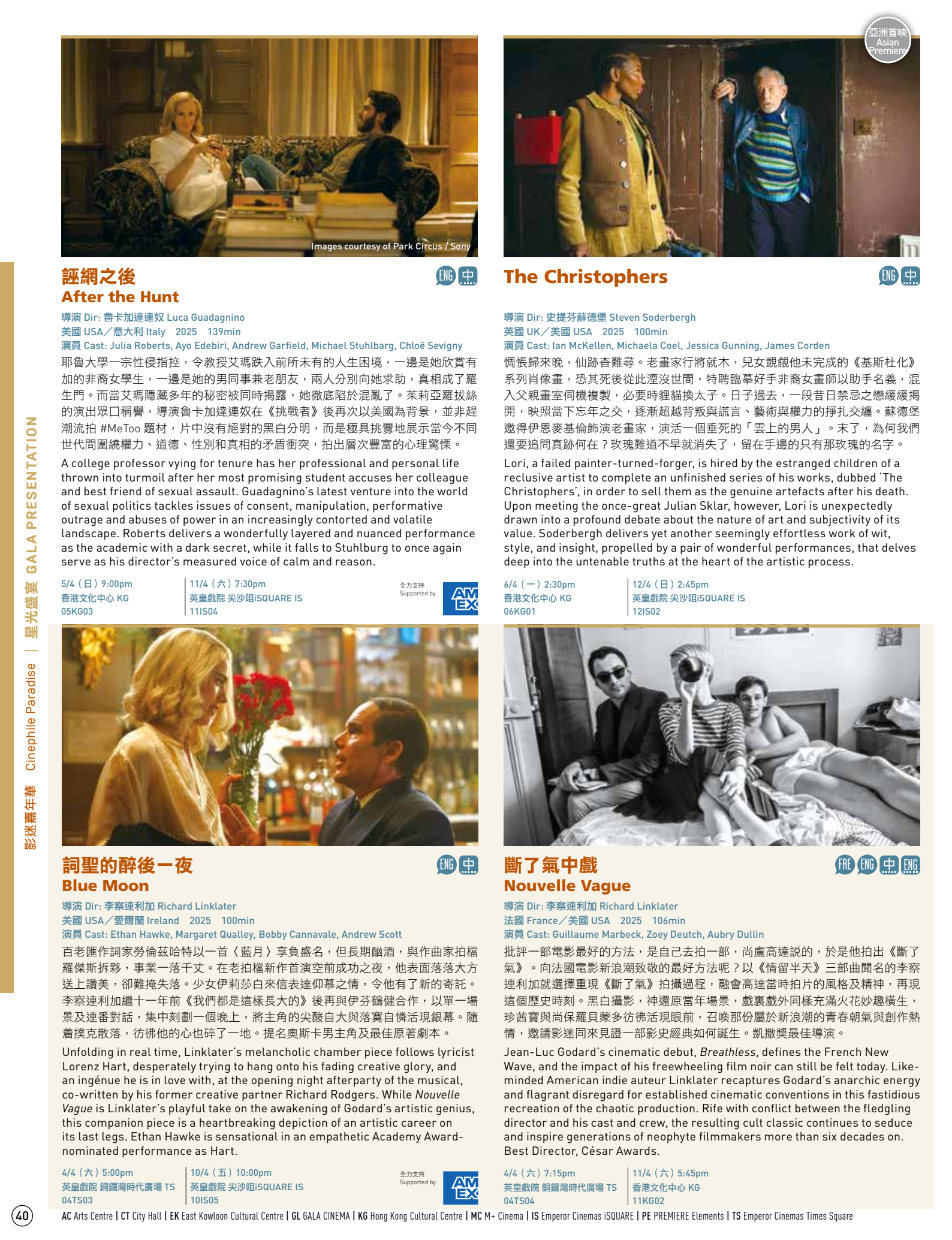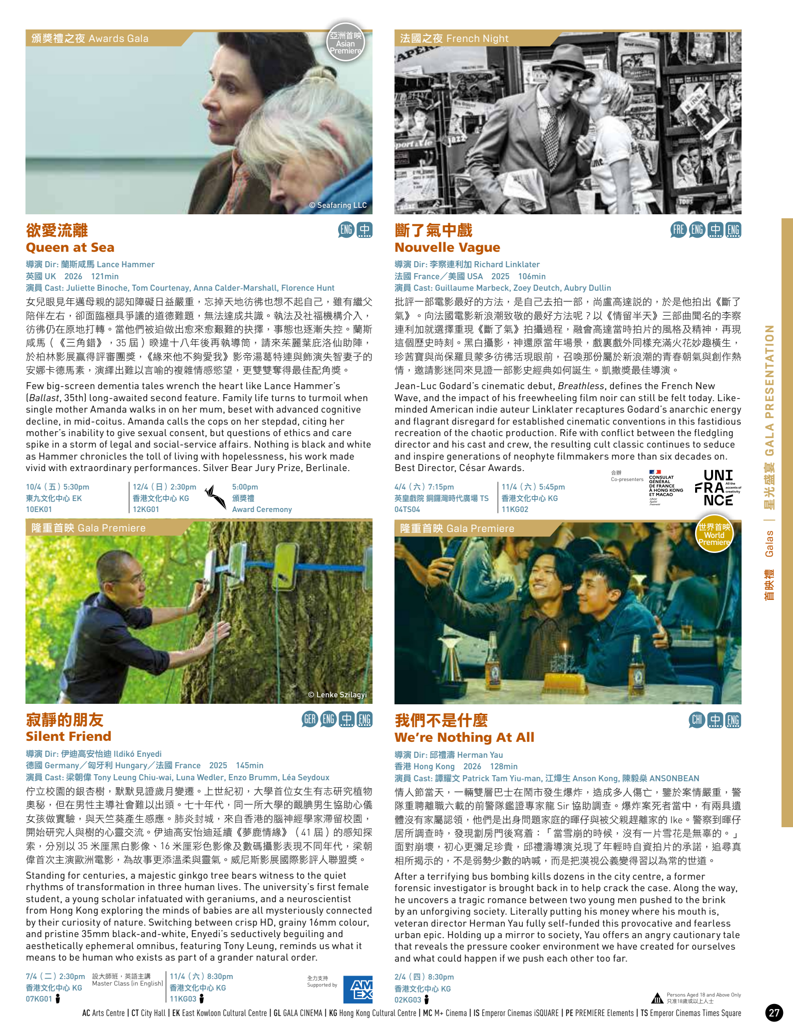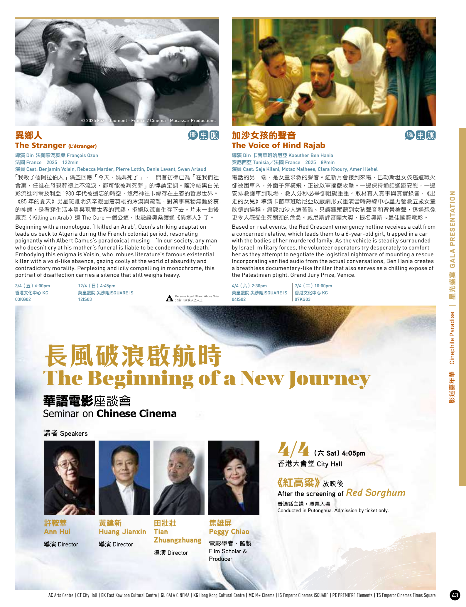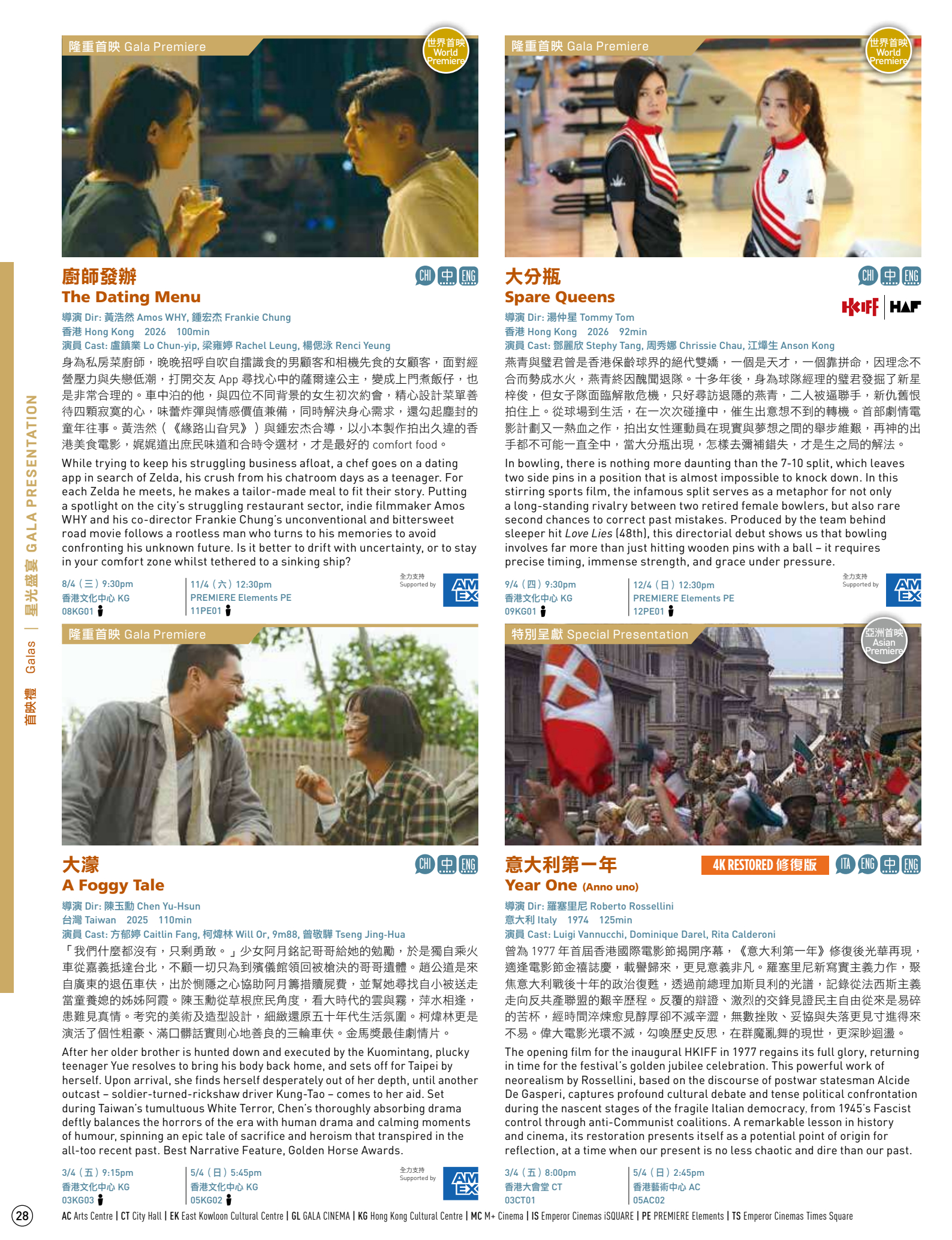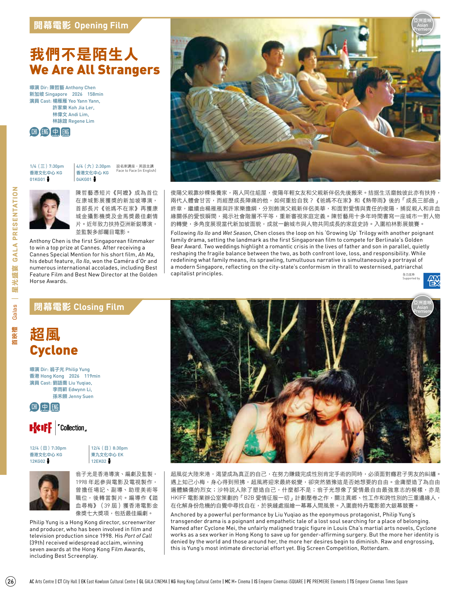 第50届香港国际电影节开幕片陈哲艺《我们不是陌生人》闭幕片翁子光《超风》《大濛》《我们不是什么》等片香港首映,之后都会在香港正式公映,不着急的可以晚点看。3月20日上午10点城市售票网正式开票!