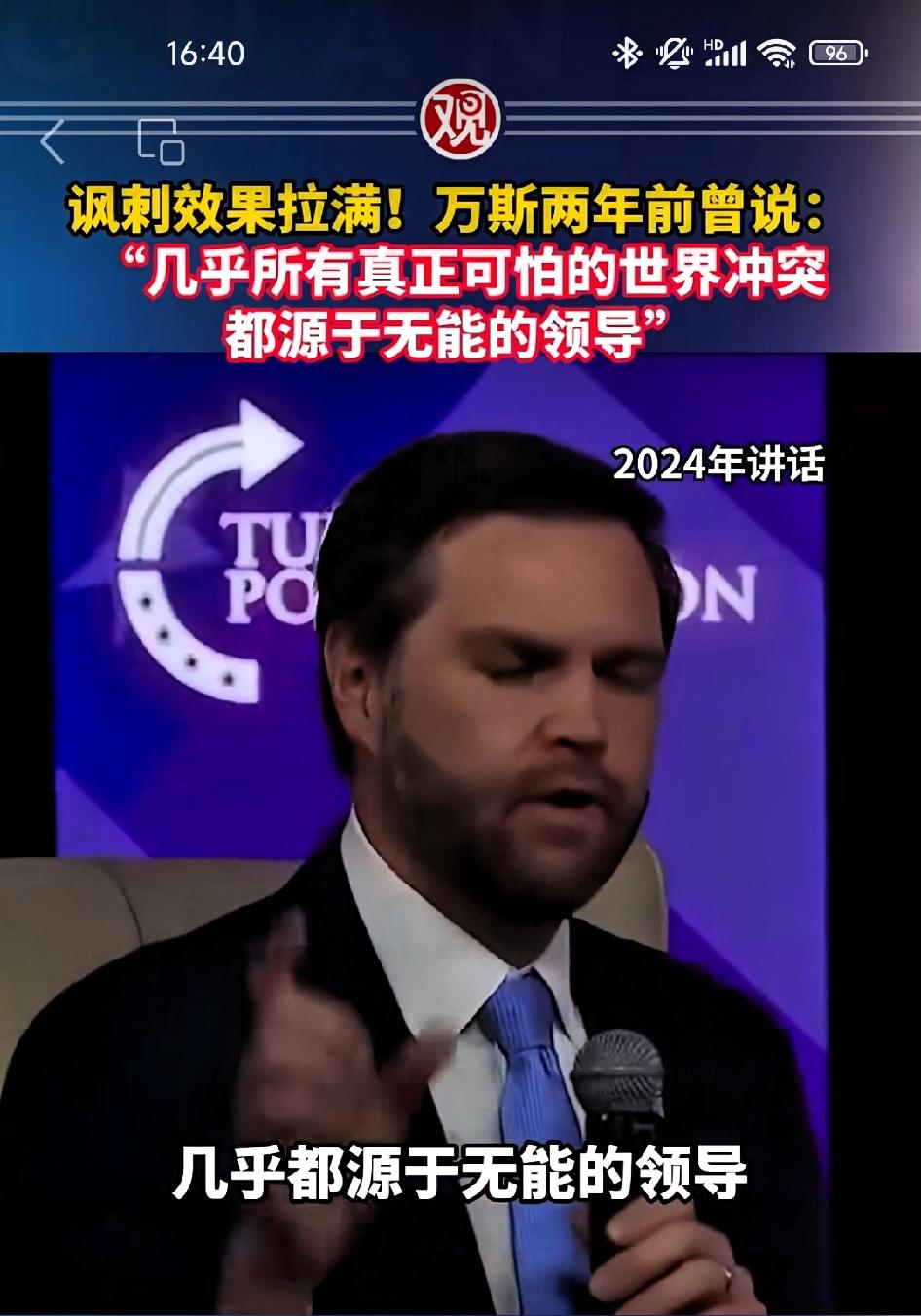 美国副总统万斯两年前曾说:几乎所有世界上可怕的冲突都源于无能的领导,现在看是对的! 万斯这话乍一听简直是真理——放眼全球,从东欧到中东,哪场烂仗背后没几个拍脑门决策的领导人? 但真正的黑色幽默在于:他说这话时,恐怕压根没把美国算进“无能领导”的名单里。可现实是,过去二十年美国自己就是全球最大的冲突制造者。阿富汗、伊拉克、叙利亚,哪一场战争不是打着“民主自由”的旗号,最后留下一地鸡毛? 更讽刺的是,那些被他国无能领导拖入深渊的平民,和那些被美国战斧导弹炸死的伊朗女孩,本质上有什么区别?她们都死于同一个逻辑:掌权者的傲慢,总要让普通人用命来填。 万斯想批判别人,却忘了照镜子。这恰恰暴露了美国政客最典型的思维钢印——永远在审视别人的无能,却对自己的战略失误选择性失明。如果所有可怕冲突都源于无能领导,那美国过去二十年输出战争、输出动荡,又该算谁的责任? 这话最狠的地方在于:它本应是一句普世的警醒,却被用来当成了只照别人的手电筒。