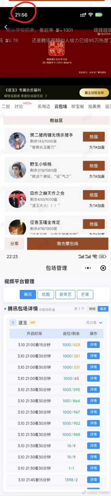 张凌赫 田曦薇《逐玉》双平台热度都即将破万,但9点的☁️包场快两个小时了,都还没领完。极致的冰火两重天、、、、逐玉云包场 滞销