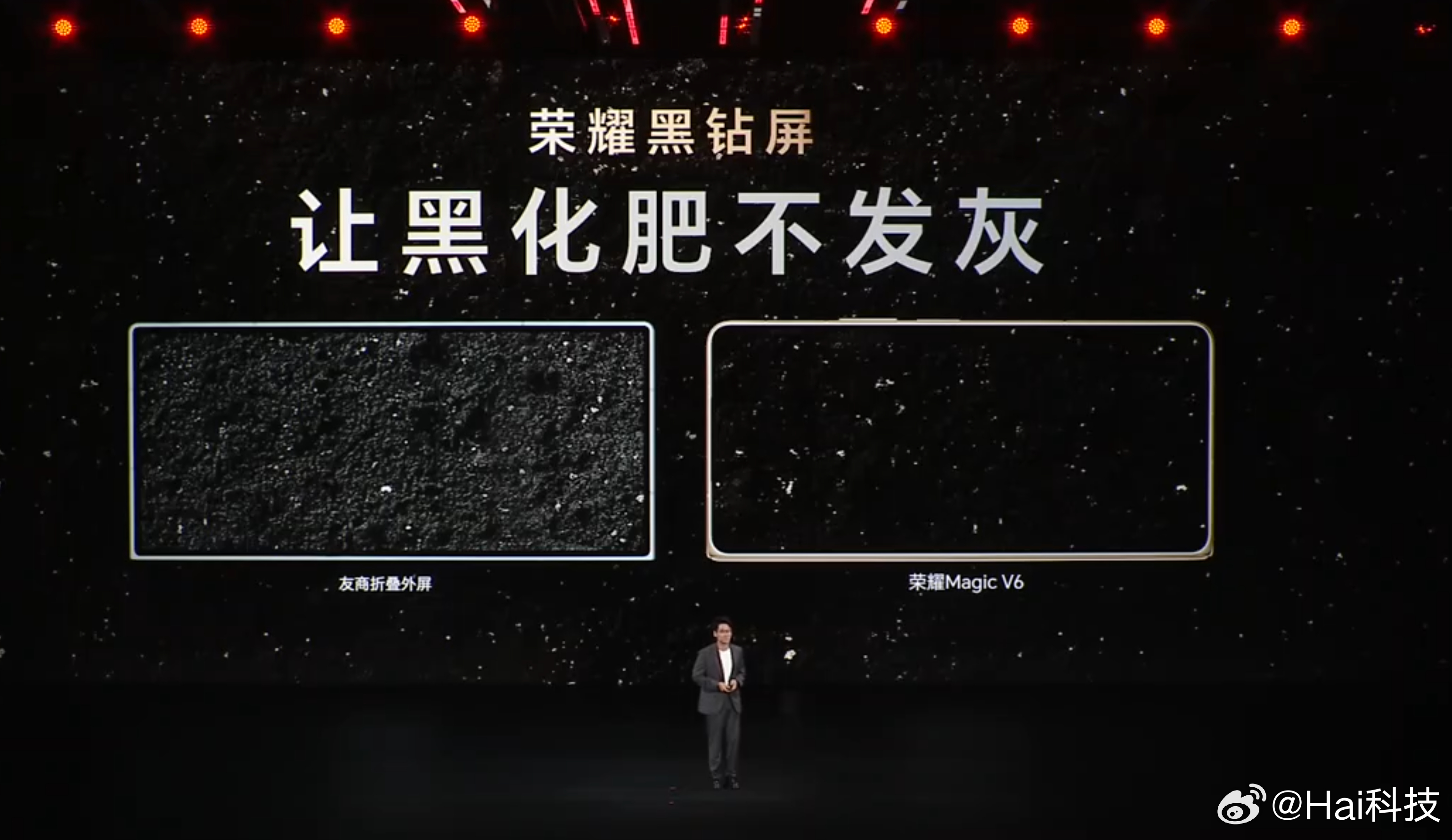 卧槽,发布会现场直接钻荣耀MagicV6啊!!!外屏还是黑钻屏,让黑化肥不发灰。技术底子太厚了:芯片级镀膜工艺,36个月持久耐用,不用贴膜的外屏!!