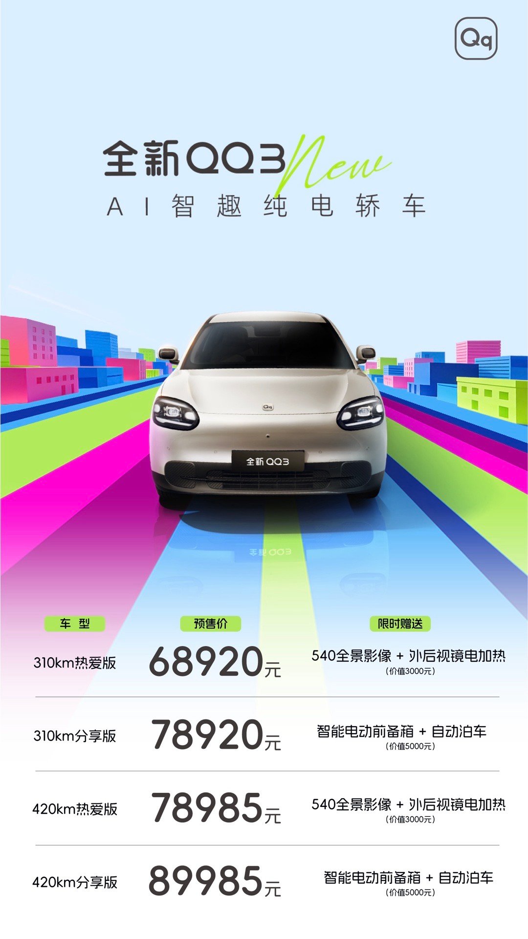 2026奇瑞全新QQ3预售发布会正式官宣!刚跑完康定到拉萨2000多公里进藏长测,这一次,叫做全新QQ的趁热打铁!全新QQ3预售开启全新QQ3丝滑跨过怒江72拐再到海拔5000米东达山的稳扎稳打,这台纯电小车用后置后驱+多连杆独立悬架,把高原山路都变成了“快乐试驾场”。300mm涉水深度+IP68级电池防护,极端环境也能稳稳hold住,420km超长续航+16.5分钟快充,全新QQ3把进藏门槛打下来了这才是同级纯电进藏“天花板”get!