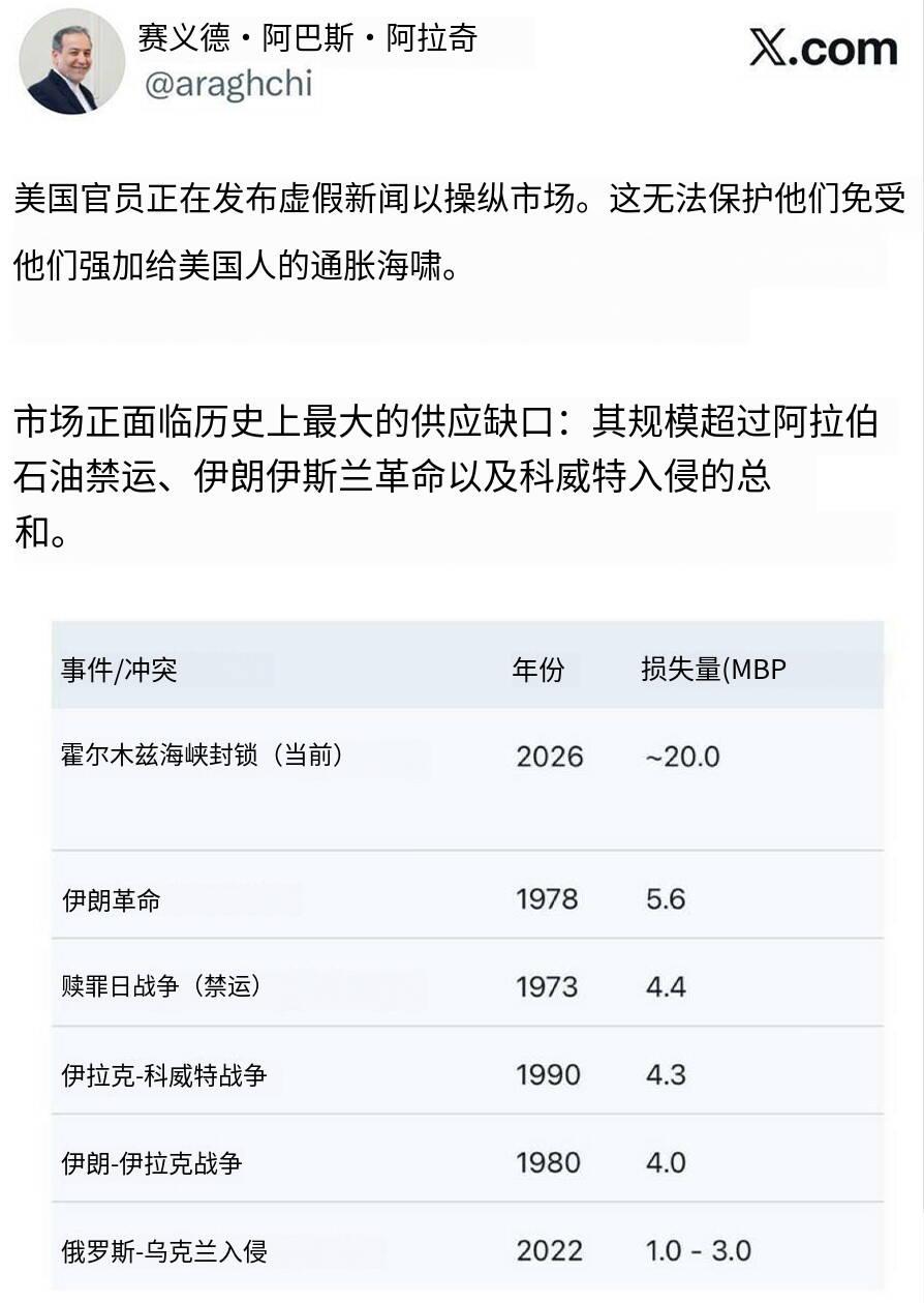 新闻快讯——阿拉格奇:美国官方通过散布虚假新闻操纵市场,却无法摆脱其强加给美国民众的通胀海啸。 市场正遭遇史上最严重的供应短缺,规模超过阿拉伯石油禁运、伊朗伊斯兰革命与科威特入侵事件的总和。 消息来源——伊朗学生通讯社转发