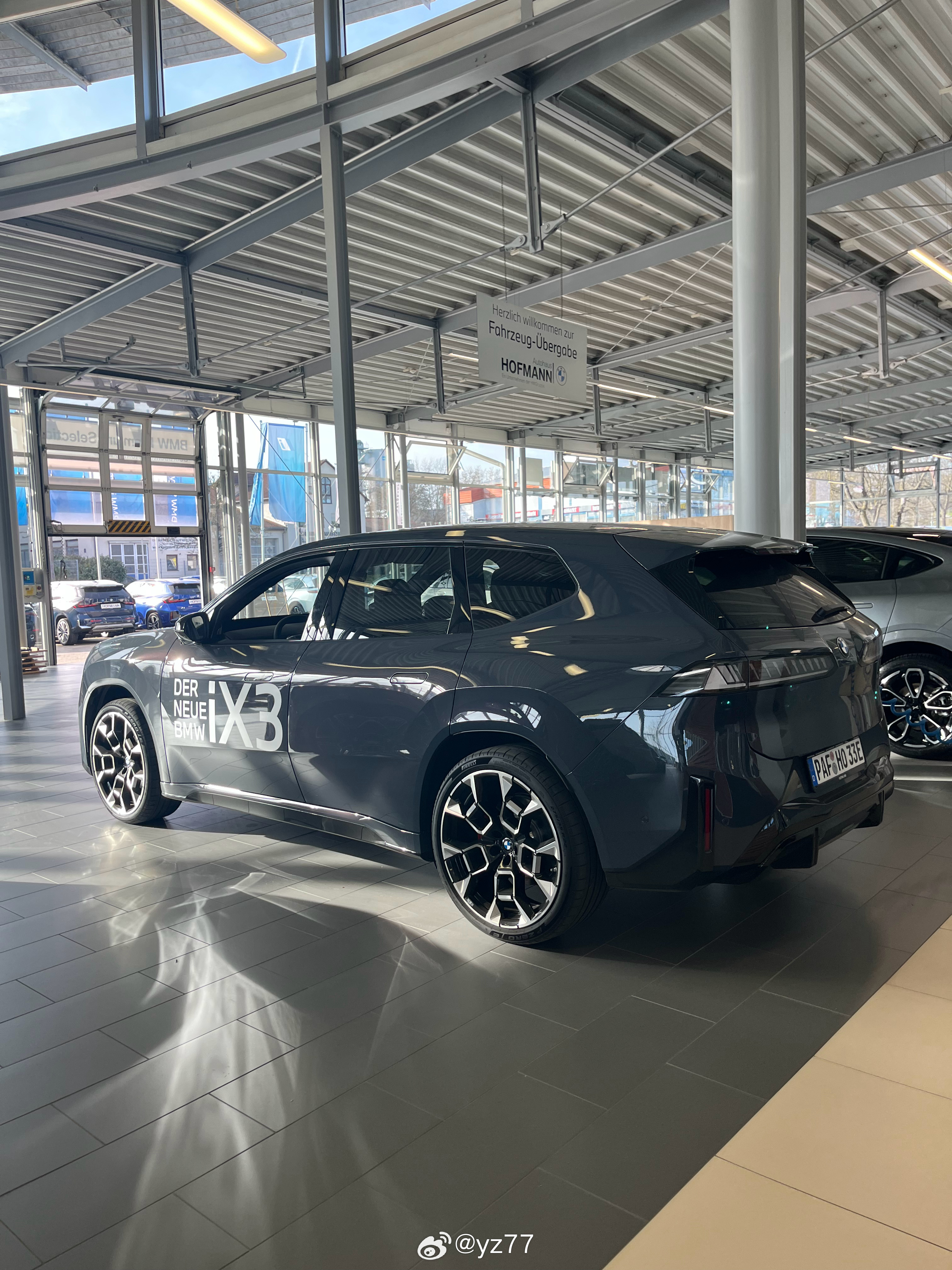 终于看到了新iX3实车,M套件,外观很帅,22寸轮毂前255后275,这辆选完应该超10万欧了。