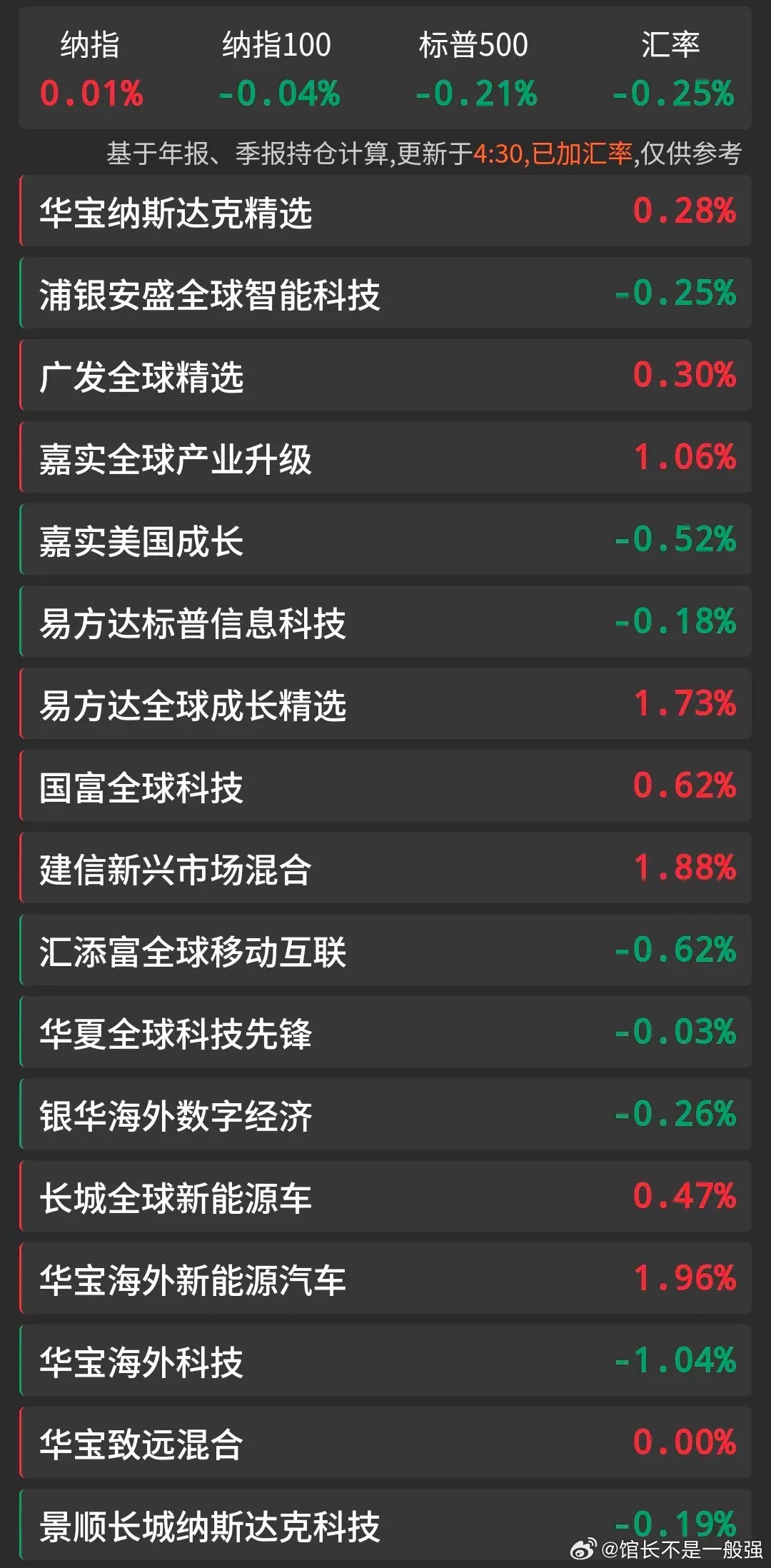 2026.3.11最新基金估值更新建信新兴市场混合1.88%景顺长城纳斯达克科技-0.19%易方达标普信息科技-0.18%易方达全球成长精选1.73%银华海外数字经济+0.26%华宝海外科技-1.04%广发全球精选0.30%以上估值供大家参考。