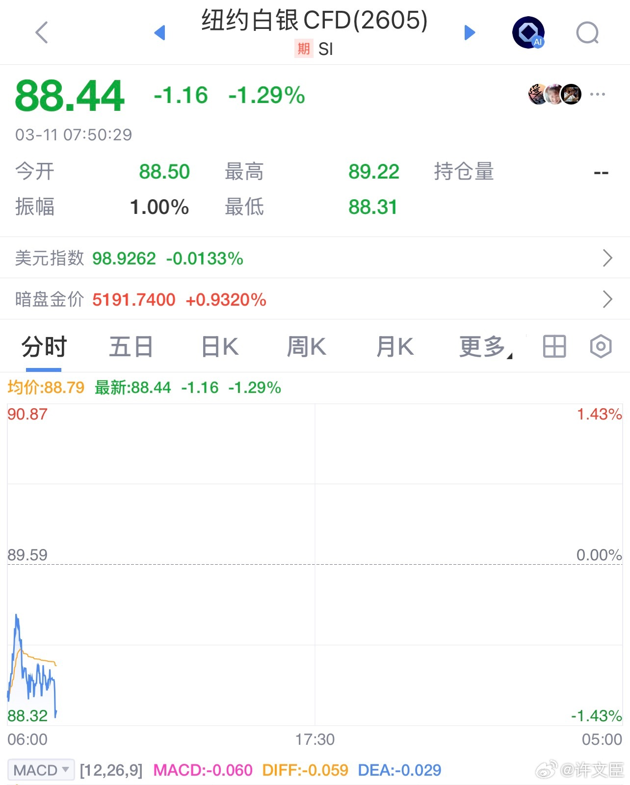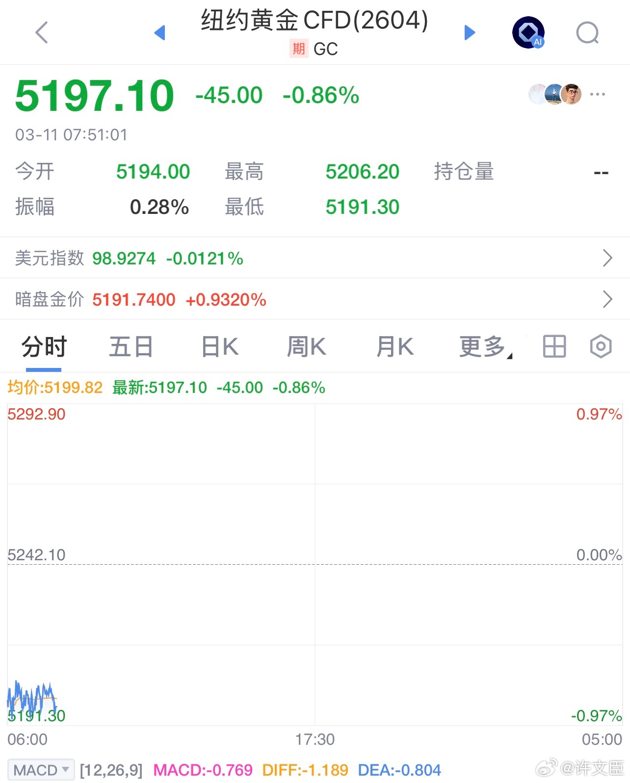 黄金白银 小幅回落。许文臣 油价继续大跌