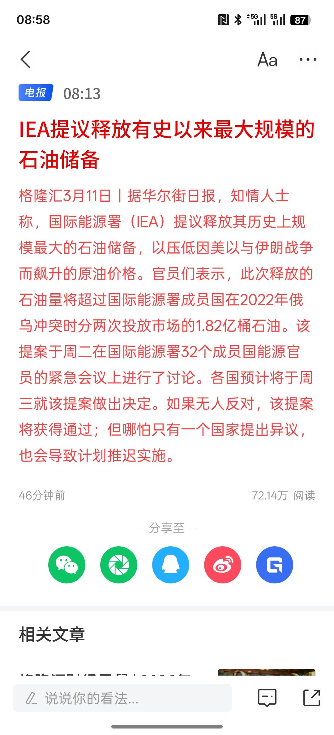 超过1.82亿桶最大规模的石油储备释放,IEA提议释放有史以来最大规模的石油储备,这么大规模的石油储备释放,也是能顶十天的量!现在霍尔木兹海峡的出口的缺口越来越大,只能缓期短期的石油短缺,但不能缓期,长期封锁的局面!霍尔木兹海峡被长期封锁,那么这些石油储备只能缓解暂时的困境!那长期封锁的话,全球经济将出现变化!美西方国家的能源部署基本上靠的是石油液化天然气!