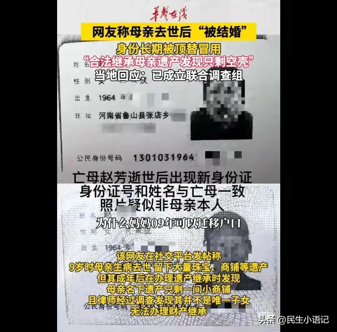 平顶山亡母被婚案后续来了!舅舅还在扛,但已经慌了。 母亲去世,竟被亲舅舅拿去“配阴婚”式登记结婚,只为吞掉家产。 这不是电视剧,是河南平顶山真实发生的人伦悲剧。 最新后续: 事件已经从县级调查,升级为平顶山市级联合调查组彻查。 伪造婚姻登记、违规迁户、公职人员涉嫌滥用职权,一条线深挖到底。 很多人最关心:舅舅的官职还在吗? 目前官方还没出正式处分通告,但他已经是重点调查对象。 据说多次找女孩求和、删视频,全都被硬气拒绝。女孩一句话说,“我不私了,我只要公道。” 人在做,天在看。 公职身份不是护身符,亲情更不是拿来算计的工具。 坐等官方通报,看这出闹剧最终如何收场。