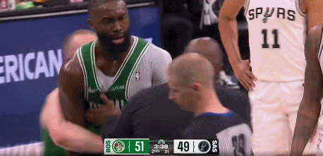 杰伦布朗被卡斯尔推出界裁判没吹,杰伦布朗追着裁判喷吃两个T被驱逐NBAnba吐槽大会杰伦布朗被驱逐