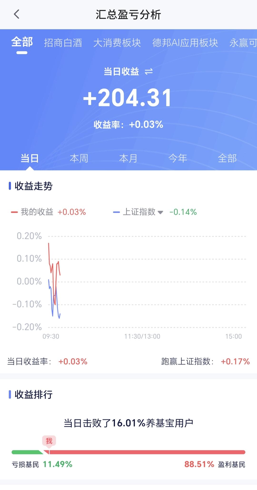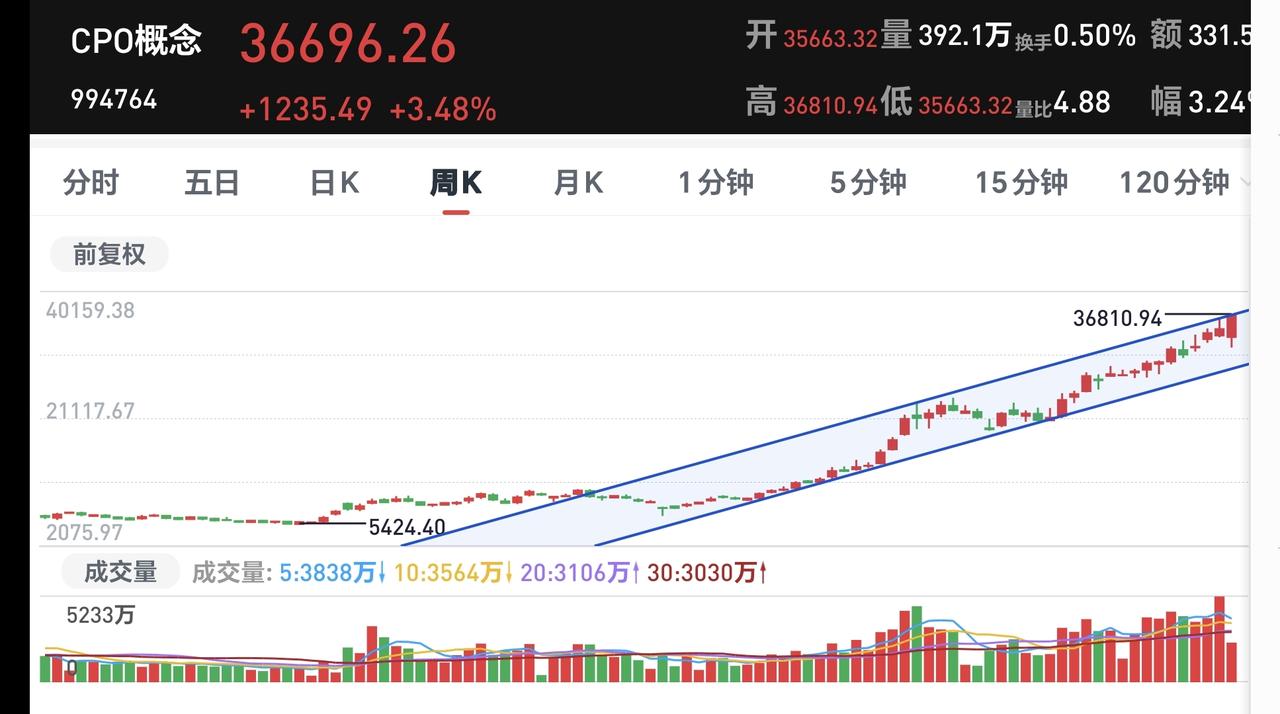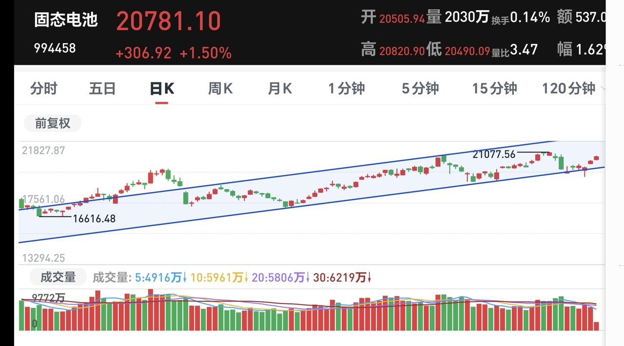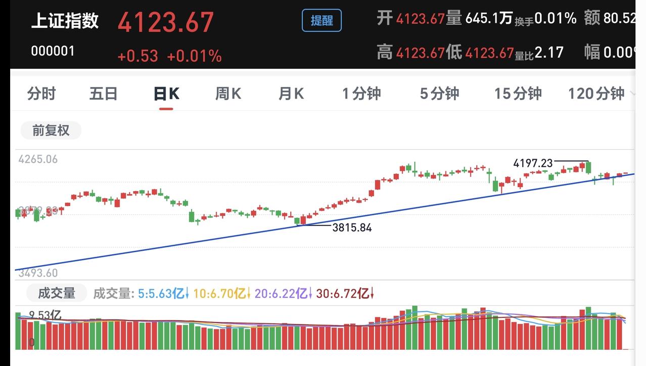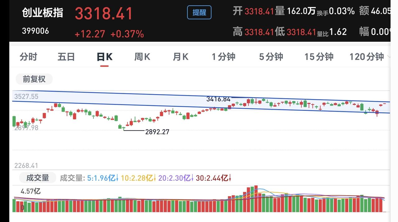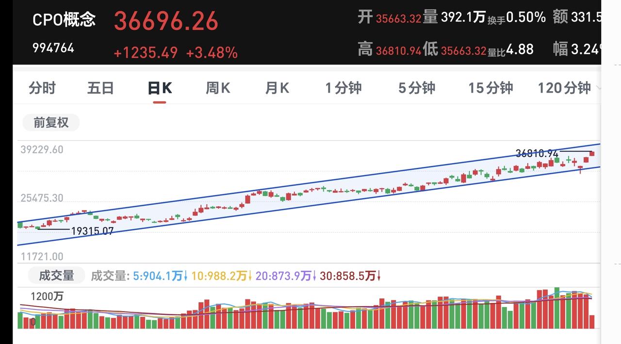 基金:今天盘中有一个好现象,还有一个坏现象 今天市场高开,三大指数都是高开,创业板指开盘上涨了0.37%,开于3318点,上证指数开盘上涨了0.01%,开于4123点。 上证指数今天开盘在日线级别上涨趋势线的上方,但距离这条上涨趋势线很近,近期主要观察这条上涨趋势线的得失,看看会不会下跌跌破这条上涨趋势线,如果跌破这条上涨趋势线,上证指数日线级别的上涨趋势就会被改变。 创业板指今天开在日线级别下跌通道内,距离下跌通道的上轨线很近,下跌通道的上轨线通常都是压力位置,现在的点位距离压力位置很近,继续上涨大概率会冲高回落。 开盘以后指数小幅度震荡,黄色线在蓝色线上方,两条线之间的敞口很大,从这个角度看,今天翻红的可能性很大。 两市累计成交4783亿,相比于昨天同期缩量了10%,市场上涨2662家,下跌2627家,上涨家数超过了下跌家数,涨停25家,跌停3家,主力资金净流出29亿。 整个市场主力资金净流入最多的三个板块是:通信板块,5G板块,物联网板块,主力资金净流出最多的三个板块是:国企板块,光伏板块,央企板块。 整个市场上涨幅度最大的三个板块是:通信板块,固态电池板块,cpo板块,下跌幅度最大的三个板块是:煤炭板块,电力板块,创新药板块。 持有基金现在盘中估值上涨了204元,盈利金额最大的三个板块是:5G板块,创业板指,芯片半导体板块,亏损金额最大的三个板块是:创新药板块,证券板块,白酒板块。 Cpo板块今天继续上涨,现在盘中估值上涨了1.78%,是连续第二个交易日上涨,持有人数在所有板块当中排名第二位。 Cpo板块日线级别处于上涨通道中,这个板块处于日线级别上涨趋势中,短线持有的人可以继续持有,日线级别上涨通道的下轨线是短线持有者的持有条件,只要不跌破这个上涨通道的下轨线,短线持有的人都可以继续持有。 CPO板块周线级别也是处于上涨通道中,但需要注意的是,现在已经上涨到了周线级别上涨通道上轨线上,这样的情况之下,持有的人可以继续持有,但不建议在这样的位置追涨进场。 固态电池板块日线级别处于上涨通道中,这个板块的日线级别处于上涨趋势,短线持有的人可以继续持有,除非跌破上涨通道的下轨线,才可以考虑要不要止盈出来观望。 固态电池板块周线级别也是处于上涨通道中,距离上涨通道上下轨的空间都比较大,小幅度的涨跌都改变不了现有的周线级别上涨趋势,长线持有的人可以继续持有,除非跌破周线级别上涨通道的下轨线,长线持有的人才可以考虑要不要止盈出来观望。 今天盘中最大的问题还是成交量的问题,现在的成交量相比于昨天同期是萎缩的,没有成交量配合的上涨都是耍流氓,没有成交量配合的上涨很容易冲高回落,好的是今天黄色线在蓝色线上方,而且两条线之间的敞口很大,也就是说,今天盘中一个好现象,一个坏现象,决定了今天的走势是一个震荡走势,大幅度上涨和下跌的可能性都不大,除非这两个现象发生改变。 花1秒钟点赞,花30秒钟评论,就是对我最大的支持,谢谢大家的支持。