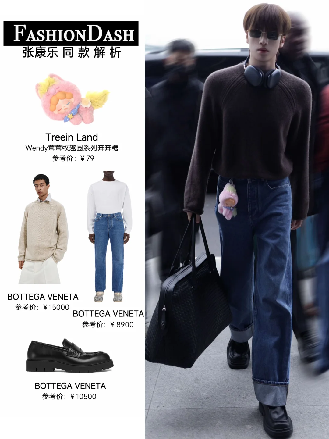 张康乐这次时装周之行,真的交出了一份高分答卷! 看了BV和Burberry两场大秀,每套造型都帅气吸睛,又特别贴合他的气质,状态全程在线。 回国这套机场look,深棕针织衫+牛仔裤,搭配编织托特包和乐福鞋,简约又充满高级感,又挂了一个奔奔马挂件,可爱又有反差感,他也有童真的一面!