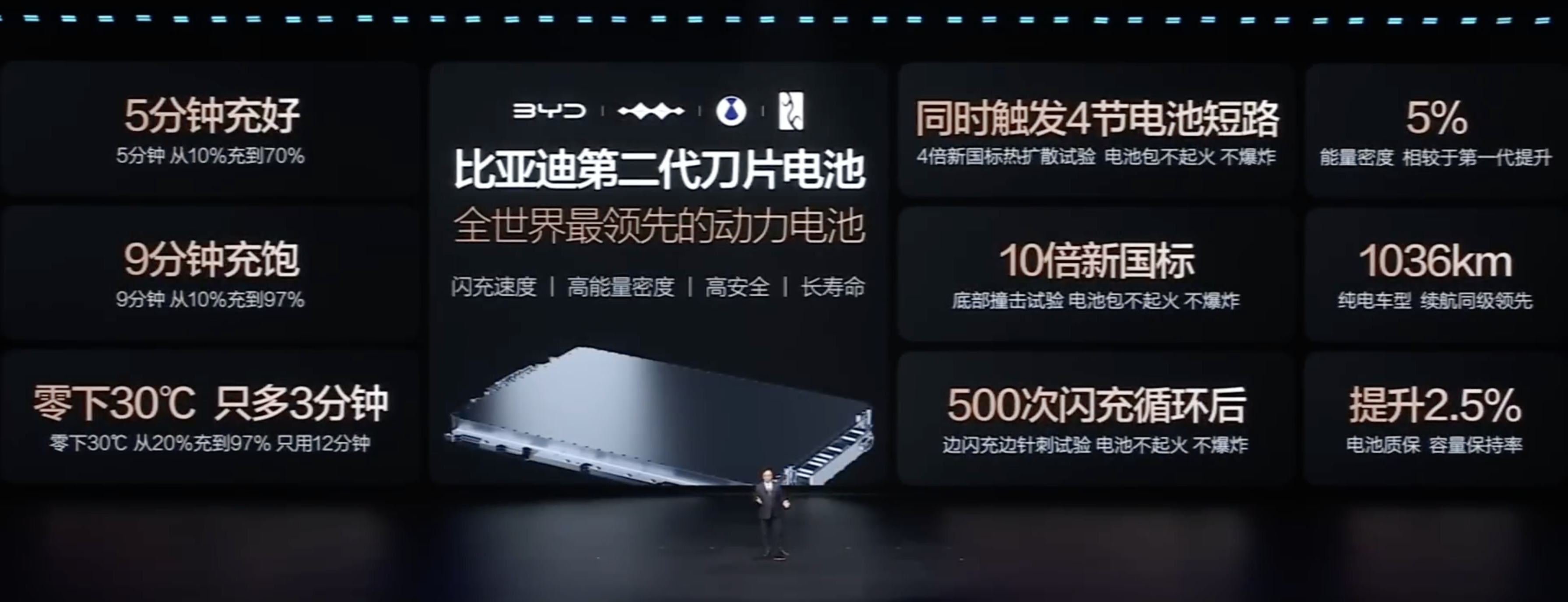 但电池技术发展到今天,其实很多问题早就有解法了。电池最怕的其实是热,温度一高不仅充电功率会被限制,电池寿命也会受影响。所以比亚迪在第二代刀片电池上重点做的就是热管理,通过“全温域智能热管理系统”,在闪充的时候尽量从源头减少产热,同时让热量更快、更均匀地被带走,避免局部过热的问题,把闪充对电池寿命的影响压到很低。