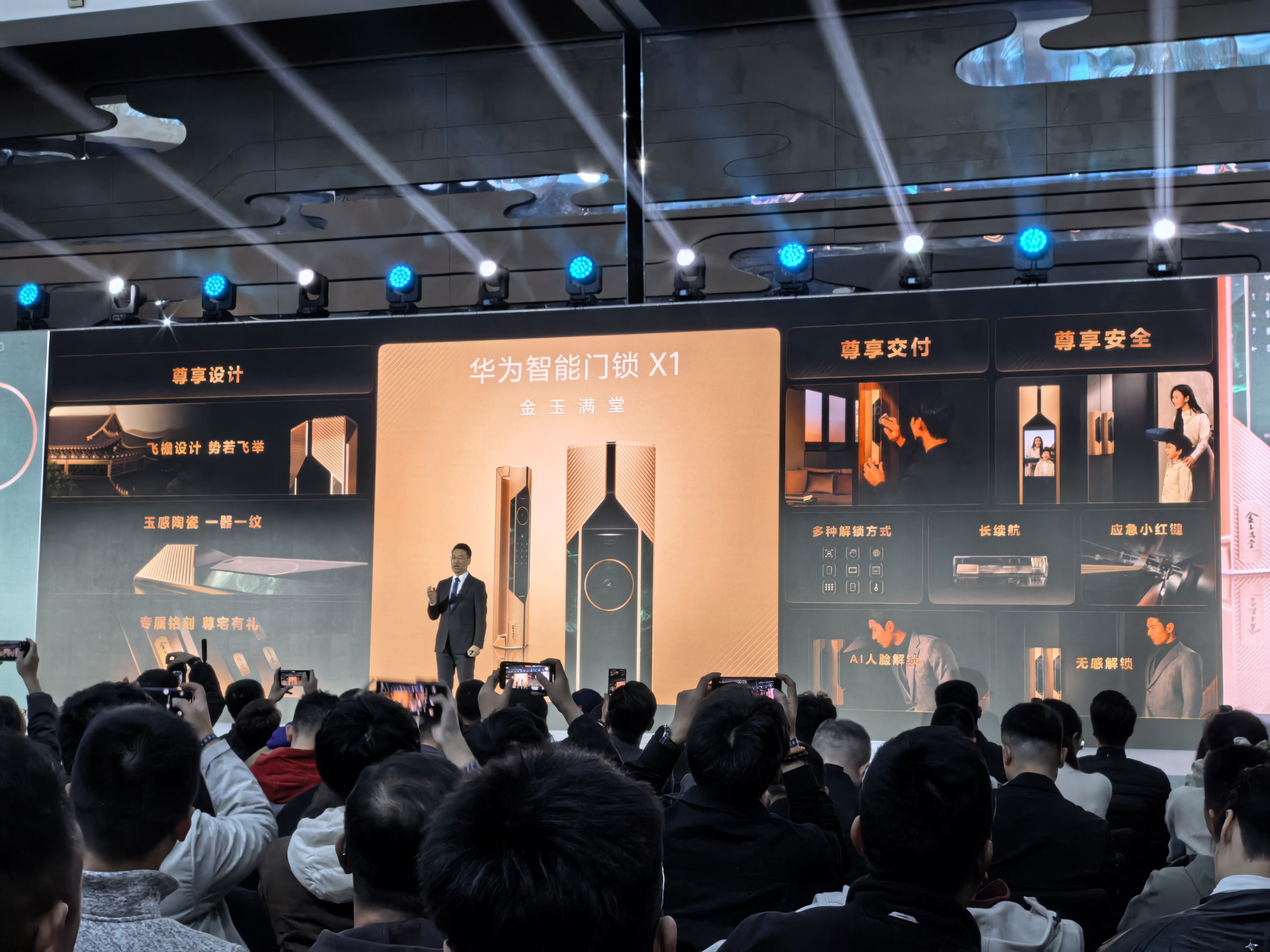 华为智能门锁 X1,太高端大气了!有 24k 金的铭牌,还有一体压铸机身,还有玉感陶瓷,太高端了!