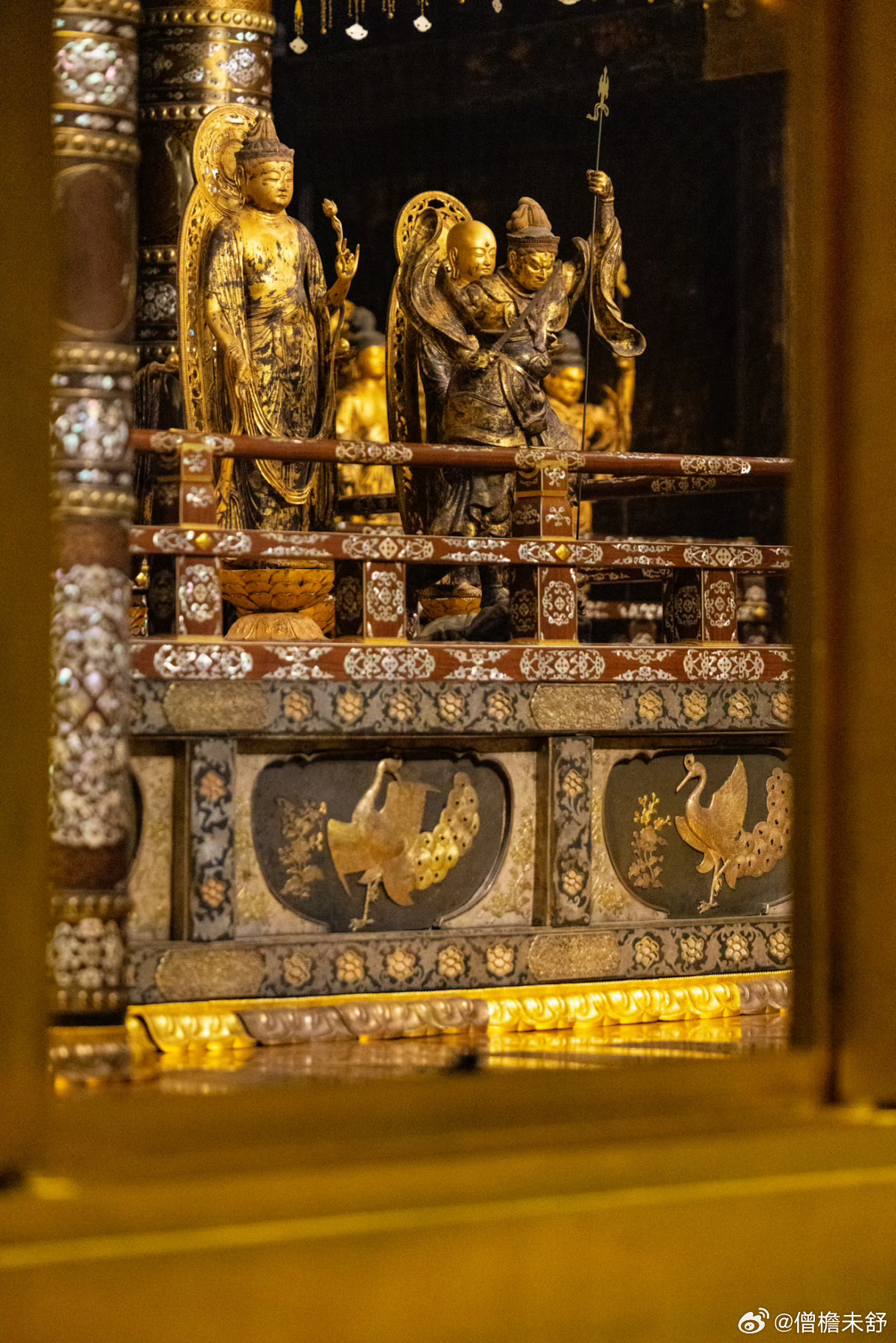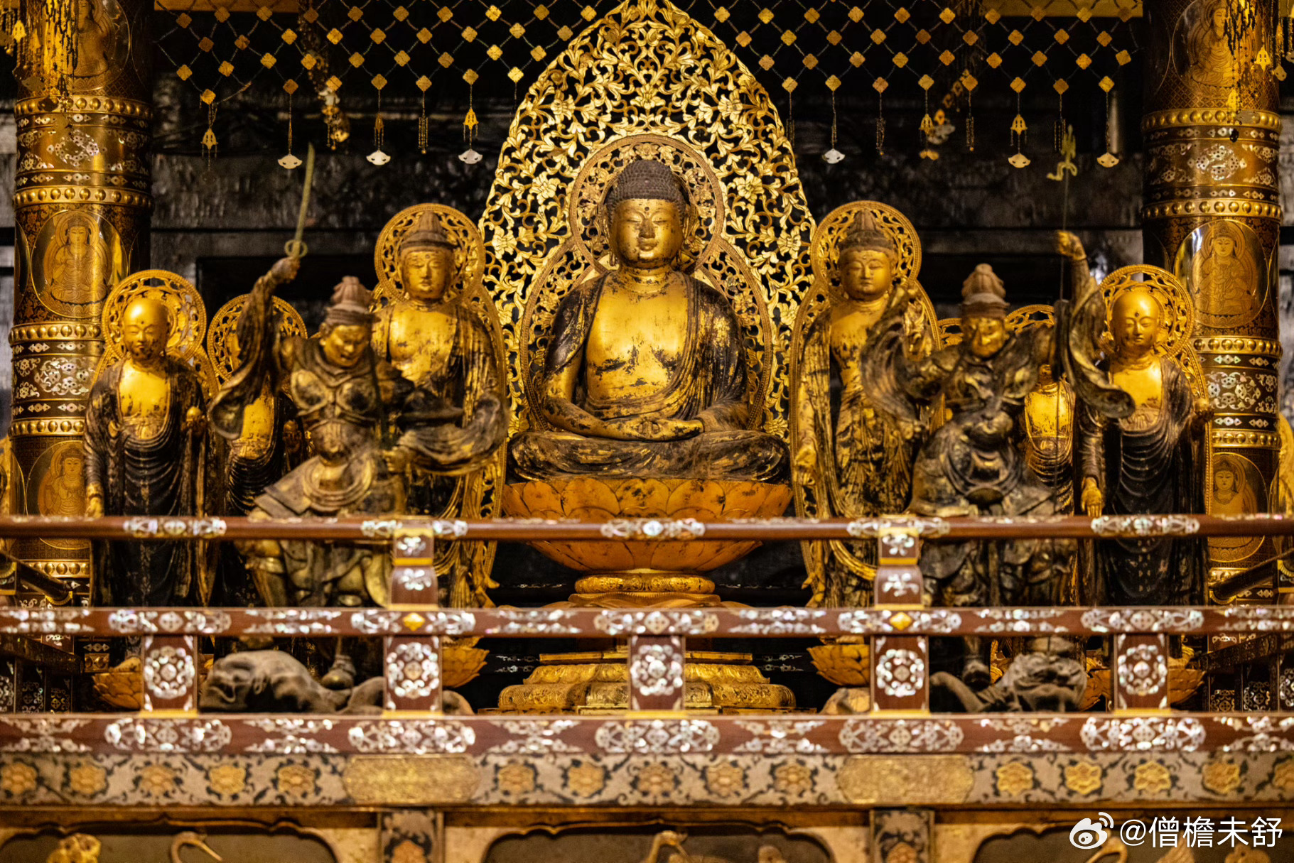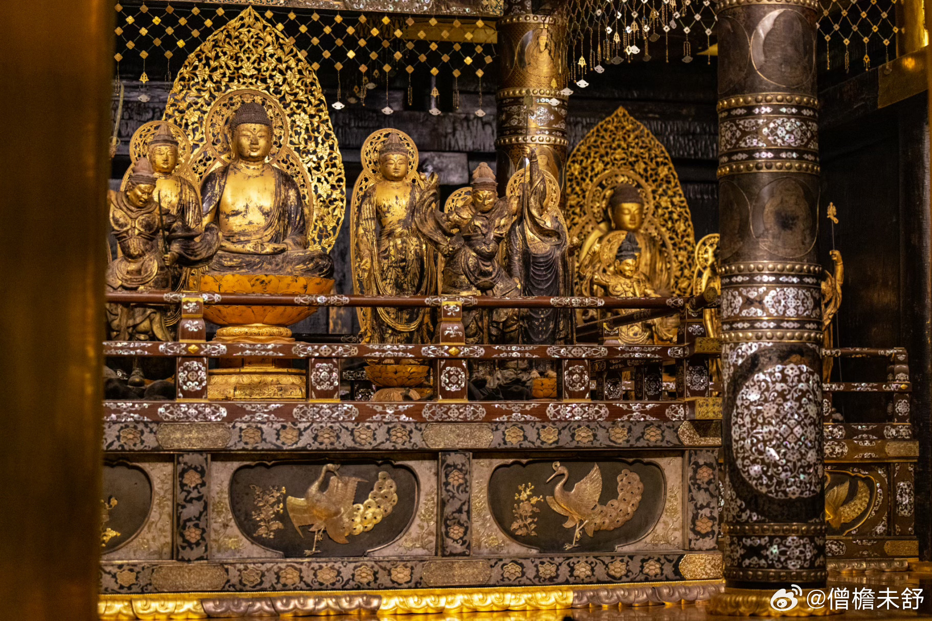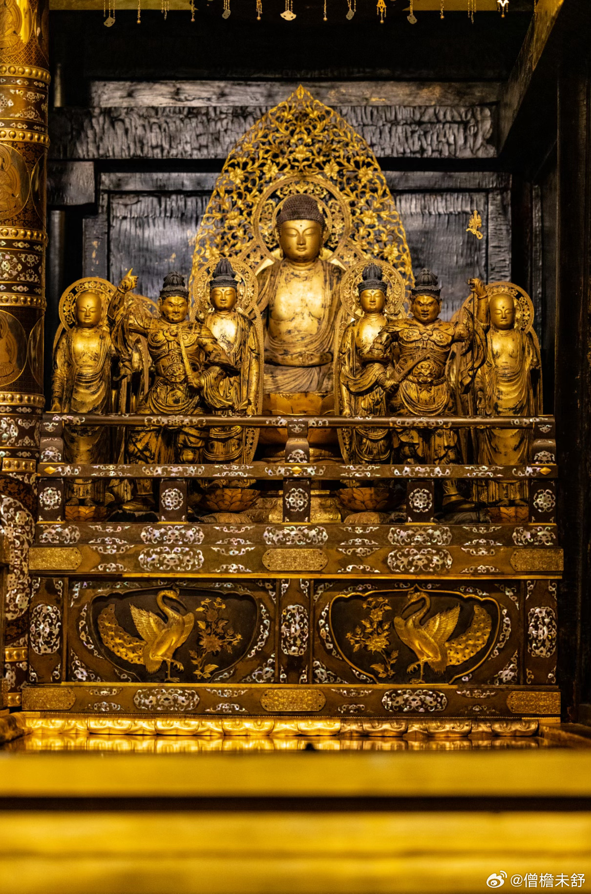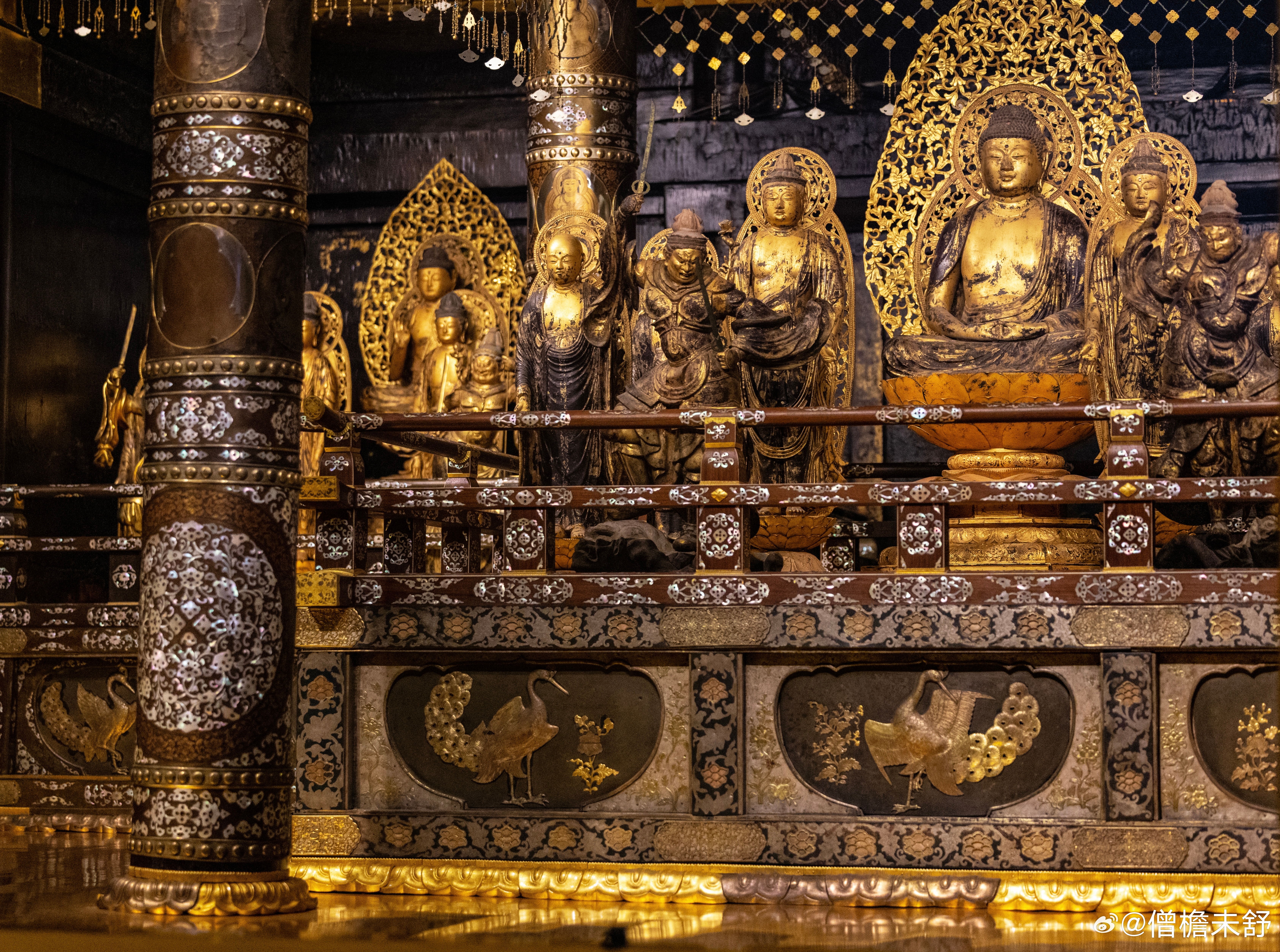 金色堂建于1124年,是中尊寺从创建时期保存至今的唯一建筑物。整座佛堂覆以金箔,供奉以阿弥陀如来为中心的佛像群,呈现纯净华美的净土景观,与平等院凤凰堂同为平安时代佛教美术的巅峰之作。