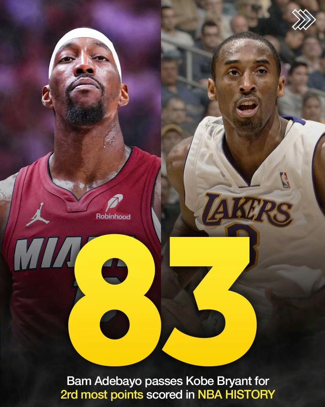 热火历史第一球星是韦德,第二球星是阿德巴约! 因为阿德巴约2017年被热火选中,一直打到今天,只要打到退役他值得历史第二。 詹姆斯,波什,没有阿德巴约对球队贡献大。 今天拿下83分已经奠定历史地位,只差一个总冠军,阿德巴约在热火成就一段佳话。[大金牙]