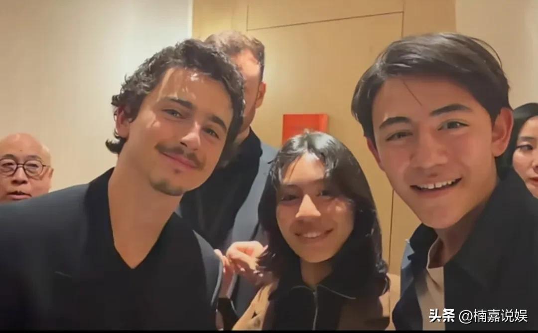 刘烨的一对儿女和美国知名演员“甜茶”提莫西·查拉梅合影了,好可爱的三张脸啊! 安娜带着两个孩子追星“甜茶”,诺一已经长成一个翩翩公子了,高大帅气,面相像爸爸刘烨,有贵族的优雅感,斯斯文文。 霓娜卷发披肩,笑起来露出一口洁白的牙齿,眉眼像妈妈,有点女生男相。 安娜用法语向“甜茶”介绍自己的两个孩子,还向他推荐了两个孩子和爸爸刘烨拍的新电影,关键是“甜茶”说一定回去看的,好有礼貌啊。 看了诺一的近照,感觉他如果将来进入娱乐圈,一定会很有前途。 甜茶