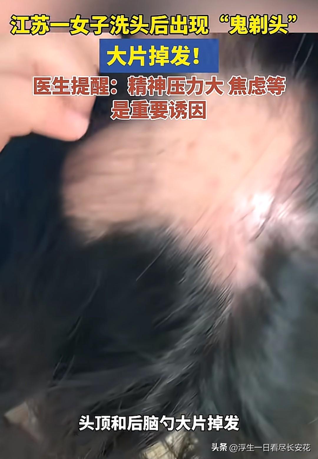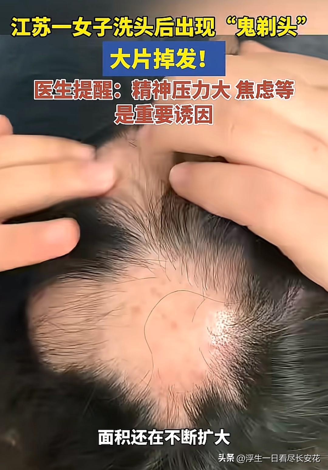 洗头后头顶秃了一块?“鬼剃头”正在盯上焦虑的你! 江苏一位女士洗完头,突然发现头顶和后脑勺秃了好几块,头皮光秃秃的像被剃过——医生诊断这是“鬼剃头”(斑秃),而罪魁祸首竟是长期的精神压力和焦虑。看到这新闻,不少人心里一紧:原来掉头发不只是“发际线后移”那么简单,压力大到一定程度,头发真的会“离家出走”! “鬼剃头”不是迷信,是身体发出的“求救信号” 你可能觉得“鬼剃头”这名字吓人,其实它是一种自身免疫性疾病:压力大时,身体的免疫系统会“误伤”毛囊,导致头发突然成片脱落。医生说,最近这类患者越来越多,尤其是年轻人——有人加班到凌晨,第二天发现头顶秃了一块;有人考研失败后,梳头时头发大把脱落;还有妈妈生完孩子后,因为带娃焦虑,发际线直接秃出一个“M型”。 更可怕的是,“鬼剃头”可能悄悄找上门。江苏这位女士说,她之前总失眠、心慌,以为是小毛病没在意,直到洗头时摸到头皮上的“秃斑”,才慌了神。身体不会说谎,那些你忽略的焦虑、熬夜、压力,最终都会以某种方式“报复”回来——掉头发,只是最直观的警告。 别等头发掉光才后悔!3个信号提醒你“压力超标”了 其实“鬼剃头”不是突然发生的,身体早就给过你信号,只是你没在意: 1. 头发变脆、易断:以前梳头掉几根,现在一掉一大把,头发变得又细又软,像“枯草”一样。 2. 头皮发麻、发紧:总觉得头皮紧绷,甚至有点刺痛,这是焦虑时头皮肌肉紧张的表现。 3. 失眠、情绪低落:躺下翻来覆去睡不着,白天没精神,一点小事就想发脾气——压力已经悄悄影响你的内分泌了。如果你中了两条以上,真的该给身心“松松绑”了。毕竟头发掉了可能还能长回来,但长期焦虑对身体的伤害,可能比你想象的更严重。 对抗“压力脱发”,试试这3个“护发锦囊” 医生说,“鬼剃头”只要及时调整,大部分人6-12个月能长出新头发。分享几个亲测有效的方法,帮你和压力“和解”: ✅每天“发呆”10分钟:别小看这10分钟,闭上眼睛深呼吸,让大脑放空,能有效降低皮质醇(压力激素)。 ✅用“头皮按摩”代替“焦虑抓头”:压力大时别使劲抓头发,换成手指腹轻轻按摩头皮,促进血液循环,还能放松神经。 ✅把“我必须做到”换成“我尽力就好”:很多焦虑来自对自己的“高要求”,试着接受“不完美”,你会发现压力减轻了一大半。 最后想说,头发就像一面镜子,照出你的生活状态。与其花大价钱买防脱洗发水,不如先给心灵“减减压”。毕竟,真正的“防脱秘籍”,从来不是什么生发液,而是好好吃饭、好好睡觉、好好爱自己。 你最近有掉头发的烦恼吗?评论区聊聊你的“解压小妙招”,让我们一起守护珍贵的头发!