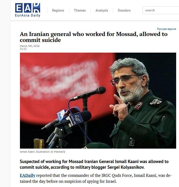 太狠了!伊朗最高领袖哈梅内伊尸骨未寒,出卖他的内鬼竟然被揪出来了。谁敢信?这人居然是伊朗军方绝对的核心大佬。这到底是一出怎样的无间道? 就在3月10日,伊朗国内掀起了一场史无前例的行动。三大安全部门同时收网,一天之内抓捕了122名间谍和线人。这绝不是普通的清洗。 这场雷霆行动的背后,隐藏着一个让整个伊朗震荡的惊天大事。那个把哈梅内伊送上绝路的内鬼,竟然是“圣城旅”的一把手,伊斯梅尔·卡尼。 先说说哈梅内伊的死,这本身就不是一场意外。根据伊朗官方媒体证实,当地时间2月28日,哈梅内伊在美以联合空袭中身亡,一同遇难的还有40多名伊朗高级官员,这场袭击是美以策划了数月的精准行动,而能让美以精准掌握哈梅内伊的行踪、会议地点,甚至放松戒备的时间,必然是有内部核心人员通风报信。 谁能有这个权限?答案就是卡尼。2020年,传奇将领苏莱曼尼被美军斩首后,是哈梅内伊亲自任命卡尼接任圣城旅指挥官,还称赞他“多年为国效忠,是最杰出的指挥官之一”。 要知道,圣城旅是伊朗伊斯兰革命卫队的核心分支,直接听命于最高领袖,掌管着海外特工网络、武器运输和代理人武装,手里掌握着伊朗最核心的军事和情报机密,包括最高领袖的安保细节、出行轨迹。 哈梅内伊到死都不会想到,自己一手提拔、视若心腹的人,竟然会在背后捅刀。3月10日这场抓捕行动,伊朗三大安全部门同步出手,一天之内抓了122人,其中30人是直接为美以从事间谍活动的核心人员,81人是在网络上向境外传递情报的线人,还有1人与反对派有财务往来,而这一切的矛头,最终都指向了卡尼。 关于卡尼的疑点,其实早就有迹可循。此前就有媒体报道,在多次针对伊朗高层的袭击中,卡尼总能奇迹般死里逃生,身边的人却全部遇难,尤其是哈梅内伊遇袭当天,有消息称他要么没出席会议,要么在爆炸前几分钟离奇离开,这种“精准逃生”本身就充满诡异。 有消息透露,伊朗从一个友好国家那里获得了关键录音,是美国中情局和以色列军方高层的通话,里面描述的情报源特征、权限级别,和卡尼完全吻合。除此之外,安全部门在搜查卡尼的办公室和住所时,还找到了加密通讯设备、绝密文件副本,以及他和摩萨德特工长期通讯的记录,证据链彻底闭合。 卡尼长期负责圣城旅的海外运作,手握巨额资金和权力,而美以一直试图渗透伊朗高层,对于这样的核心人物,必然会不惜一切代价策反。更关键的是,卡尼的低调务实和哈梅内伊的强硬反美路线,或许存在潜在分歧,这也给了美以可乘之机。 目前,关于卡尼的现状还存在一些争议,有传闻说他已经叛逃以色列,也有说他被伊朗安全部门控制审讯,但可以确定的是,他的背叛给伊朗带来了致命打击。哈梅内伊去世后,伊朗本就面临权力交接的动荡,而核心将领的背叛,不仅让伊朗损失了大量机密,更动摇了军方的军心,也让美以对伊朗的渗透变得更加肆无忌惮。 这场无间道般的背叛,背后是中东地缘政治的残酷博弈。伊朗一边要应对美以的外部打压,一边要清理内部的间谍内鬼,前路注定艰难。 而卡尼的结局,无论是被处决还是叛逃,都注定会成为中东情报史上的一个标志性事件,也给所有国家敲响了警钟——最危险的敌人,往往藏在自己人中间。 截至目前,伊朗官方还没有公布卡尼案件的更多细节,但这场雷霆清洗已经向外界表明,伊朗绝不会容忍内鬼的存在。后续局势如何发展,我们也会持续关注,毕竟这场背叛带来的影响,远不止一个人的命运那么简单。