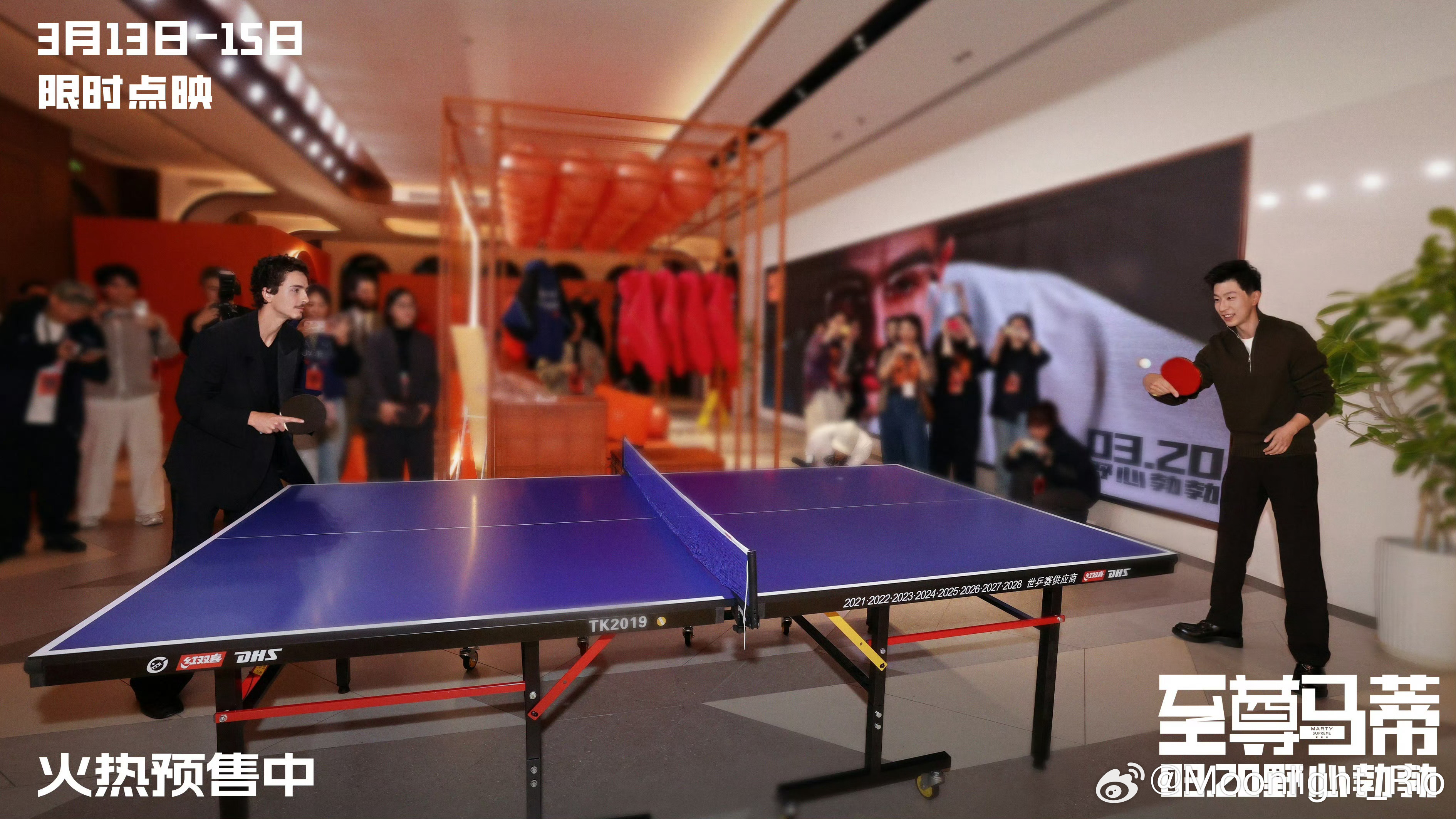马龙参加电影《至尊马蒂》中国首映礼🎥与甜茶打乒乓球,并赠送签名球拍🏓