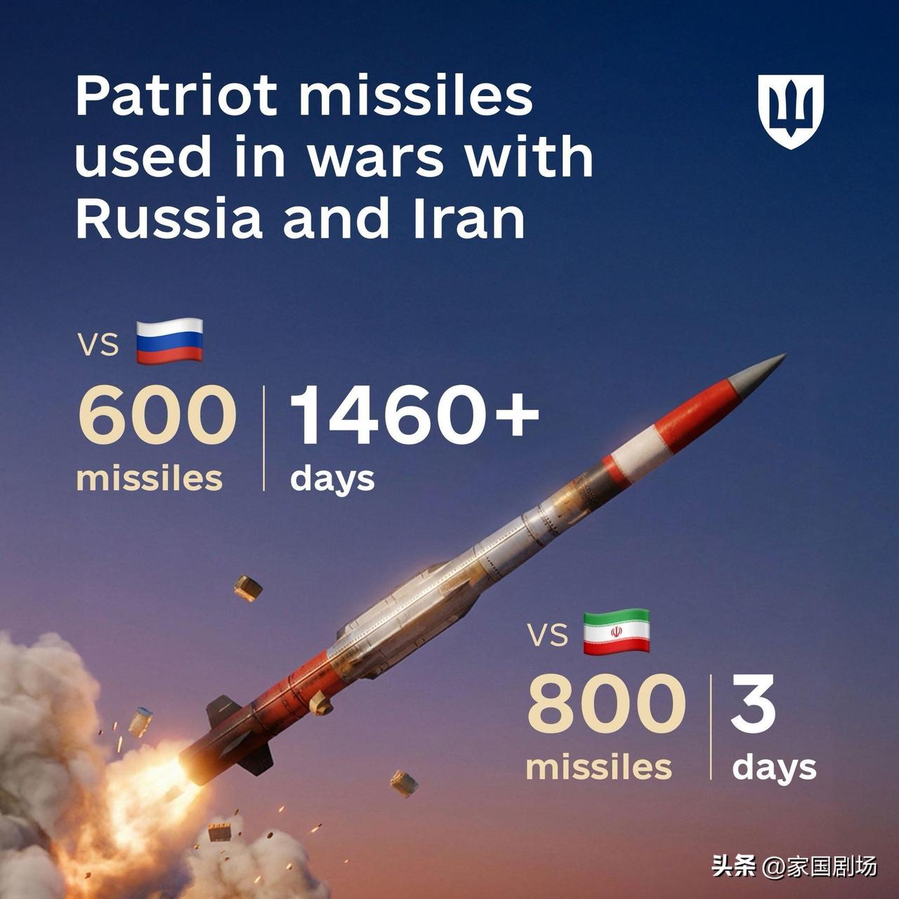 乌克兰国防部继续哭,表示1460多天里,才发射了600枚爱国者拦截弹,而中东这边,短短三天就浪了800枚 来源:Міністерство оборони України