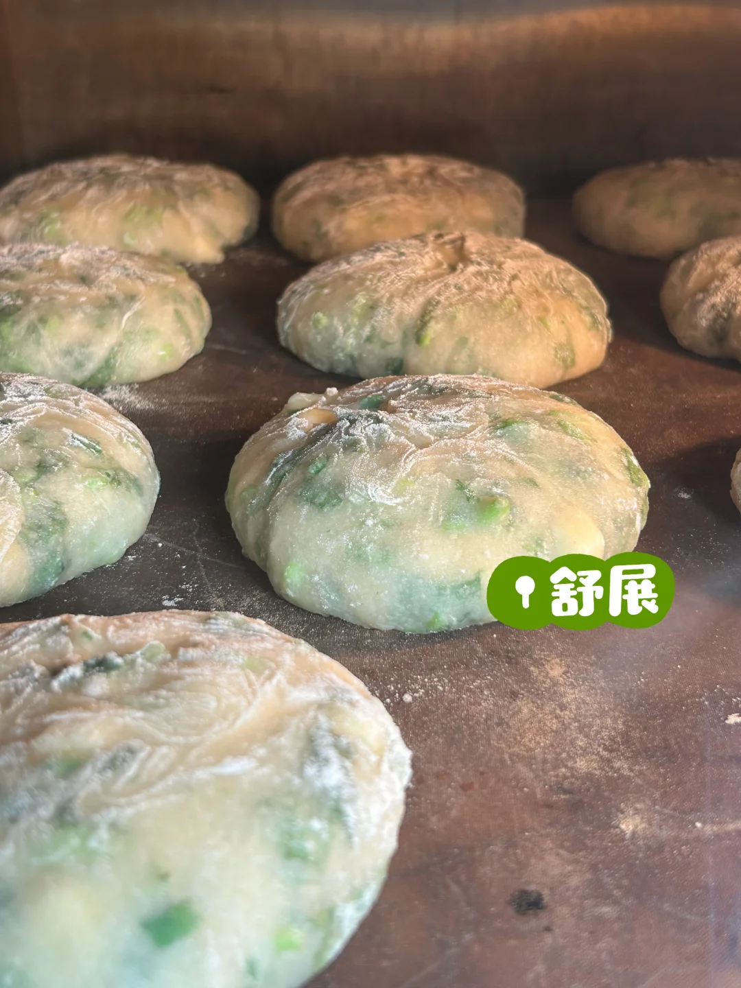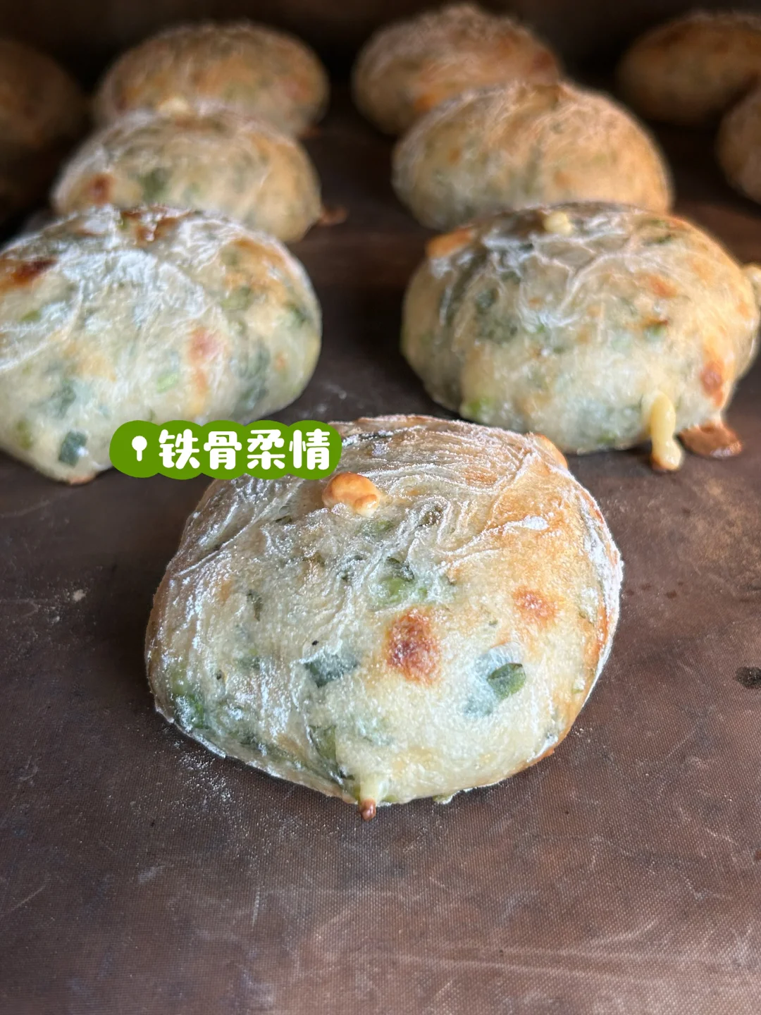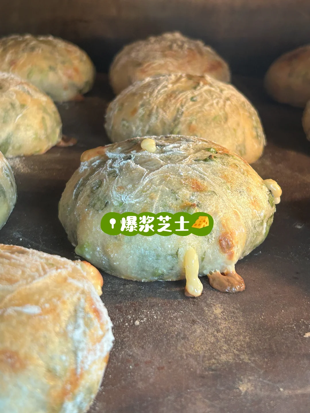 记录分享: 烫种: T80 50|高粉 50|开水 200|盐 2 烫成团以后,冷藏备用。 主面团: 烫种 300|高粉 450|水 290+150+50|盐 9|鲜酵母 5|芝麻油 22 出缸 20 ℃ 辅料: 芝士丁 150|大孔芝士 30 香葱 50|茼蒿 |200 折叠斩拌进面团 松弛半小时,翻面整理面团 入冷藏,隔夜 18 个小时左右。 次日:回温 1 个小时 分割 170 面团 ✖️10 平炉 SP50 上火 250 下火 240℃,18 分钟