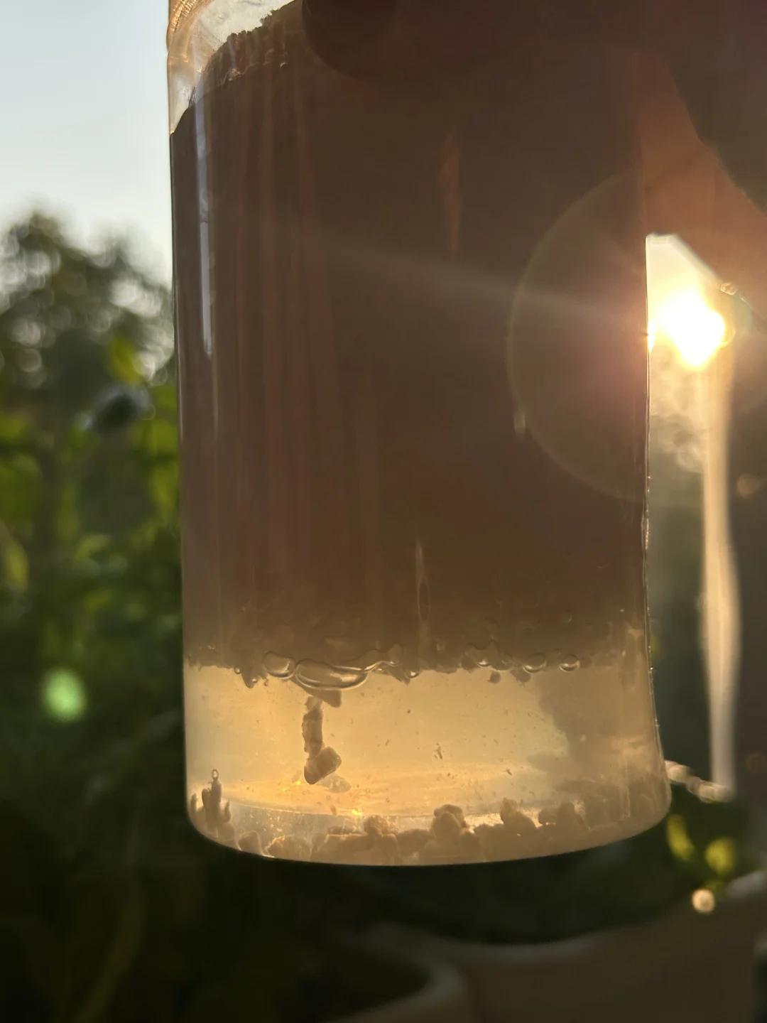 第二天,有了甜香,差不多 40 小时过去,酒窝底部出现了液体。