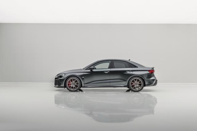 奥迪为纪念五缸发动机诞生50周年推出的谢幕之作,全球仅限量750台(含585台掀背版、165台三厢版)。 外观采用专属“孔雀石绿”车漆,搭配哑光碳纤维空气动力学套件与19英寸“钕金”锻造轮毂,矩阵式LED大灯解锁时会呈现五缸引擎点火动画,极具辨识度。 动力搭载2.5T直列五缸发动机,最大功率400马力,峰值扭矩500牛·米,匹配7速双离合与quattro四驱,0-100km/h加速3.8秒,极速290km/h。 底盘升级为三向可调绞牙避震与强化后防倾杆,标配碳陶瓷刹车与半热熔轮胎,同时减少隔音材料以强化五缸机独特声浪,是兼具收藏与赛道性能的性能钢炮。