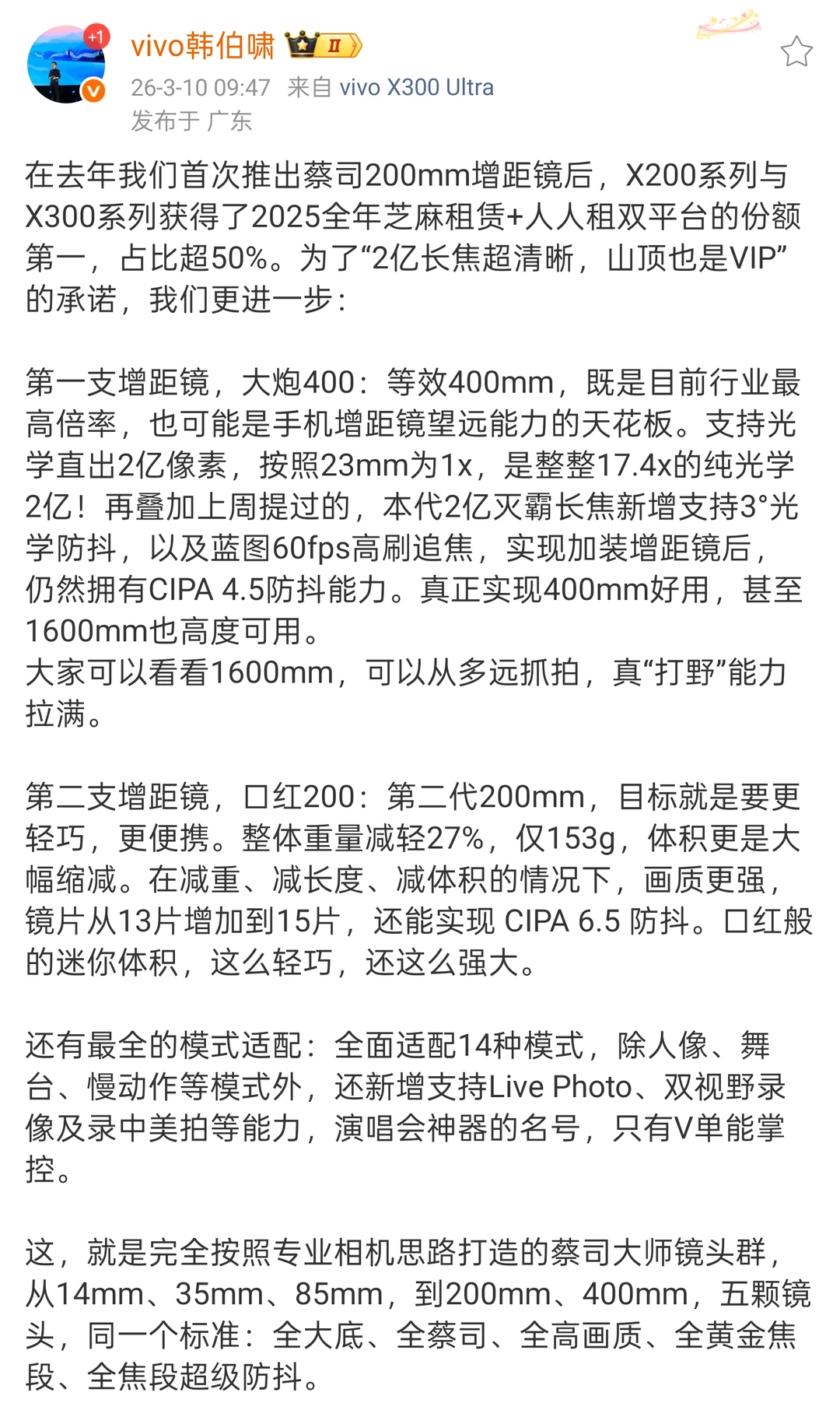 vivoX300Ultra长焦看这个孔径形状是放弃了X200Ultra上面的