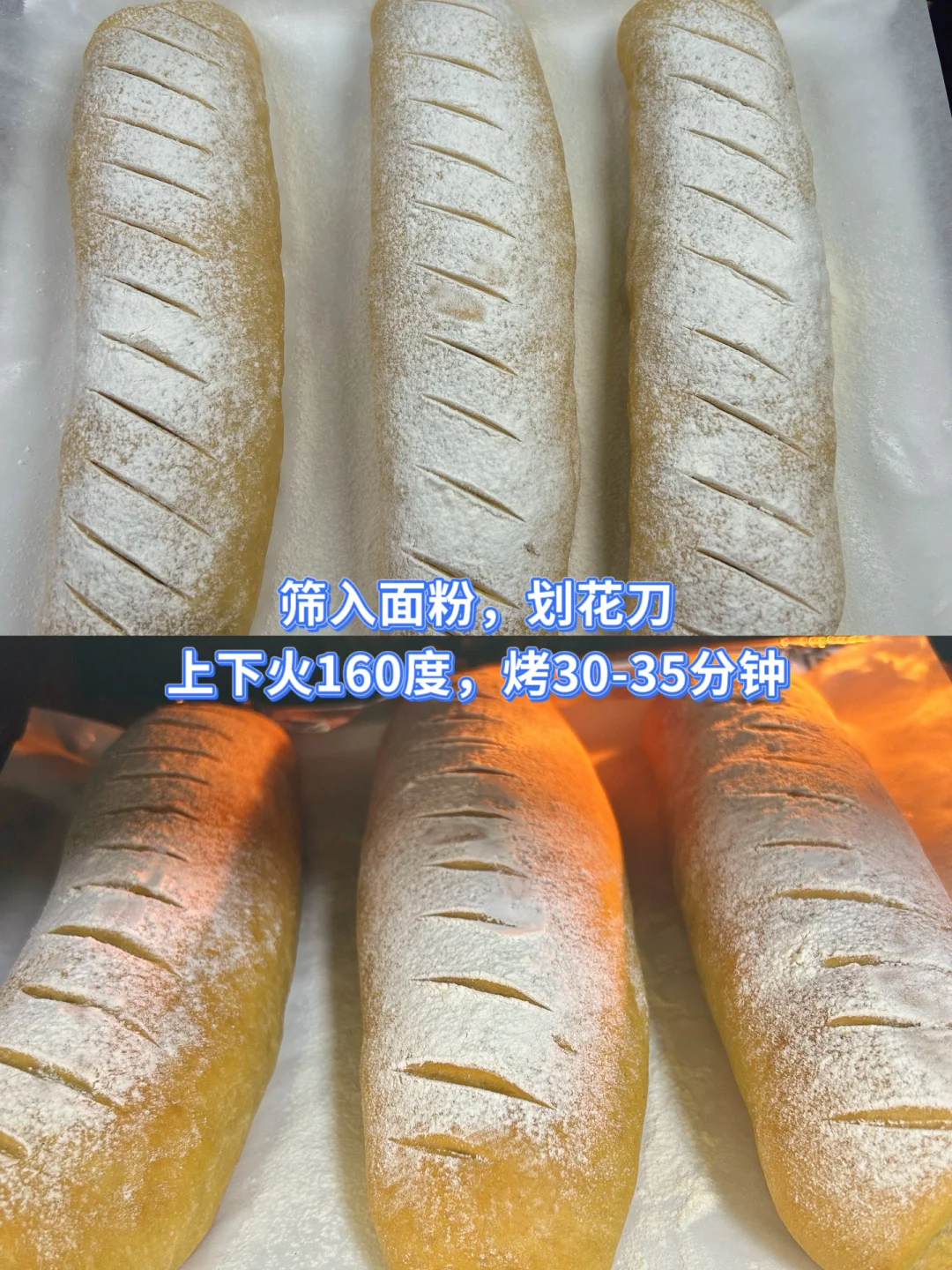 5.发酵好的面团表面筛一层薄面粉,用锋利的刀或割包刀划花刀(斜向划,深度约0.5cm,避免割太深导致面团塌陷)。