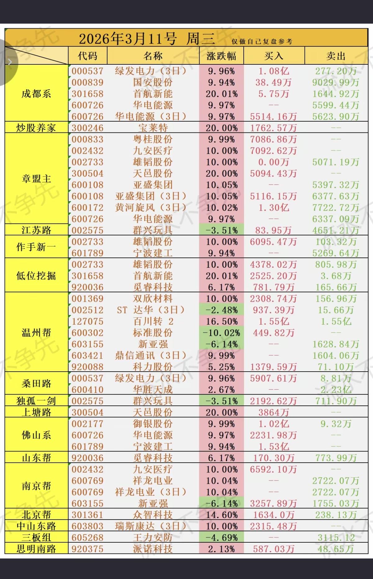 3.11周三 知名游资大佬 抢筹 龙虎榜! 游资抢筹焦点:算电协同、锂电池、化工 瑞斯康达、九安医疗、雄韬股份等,获得多家游资共同抢筹