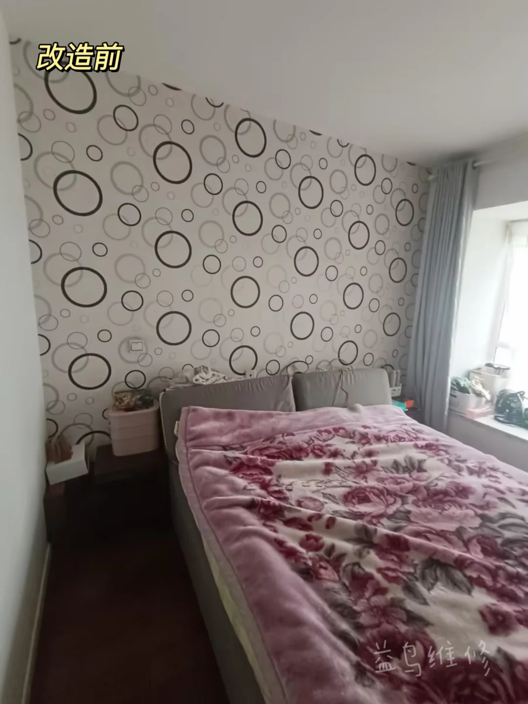 ▪️ 全屋墙面焕新 改造前:全屋普通大白墙,年久发黄发暗,毫无质感可言; 改造后:彻底铲除问题墙面至基层,重新做基层找平、精细打磨后涂刷乳胶漆。主色选用暖调奶白,搭配复古跳色线条,比纯白更有温度,法式复古的慵懒氛围感直接拉满