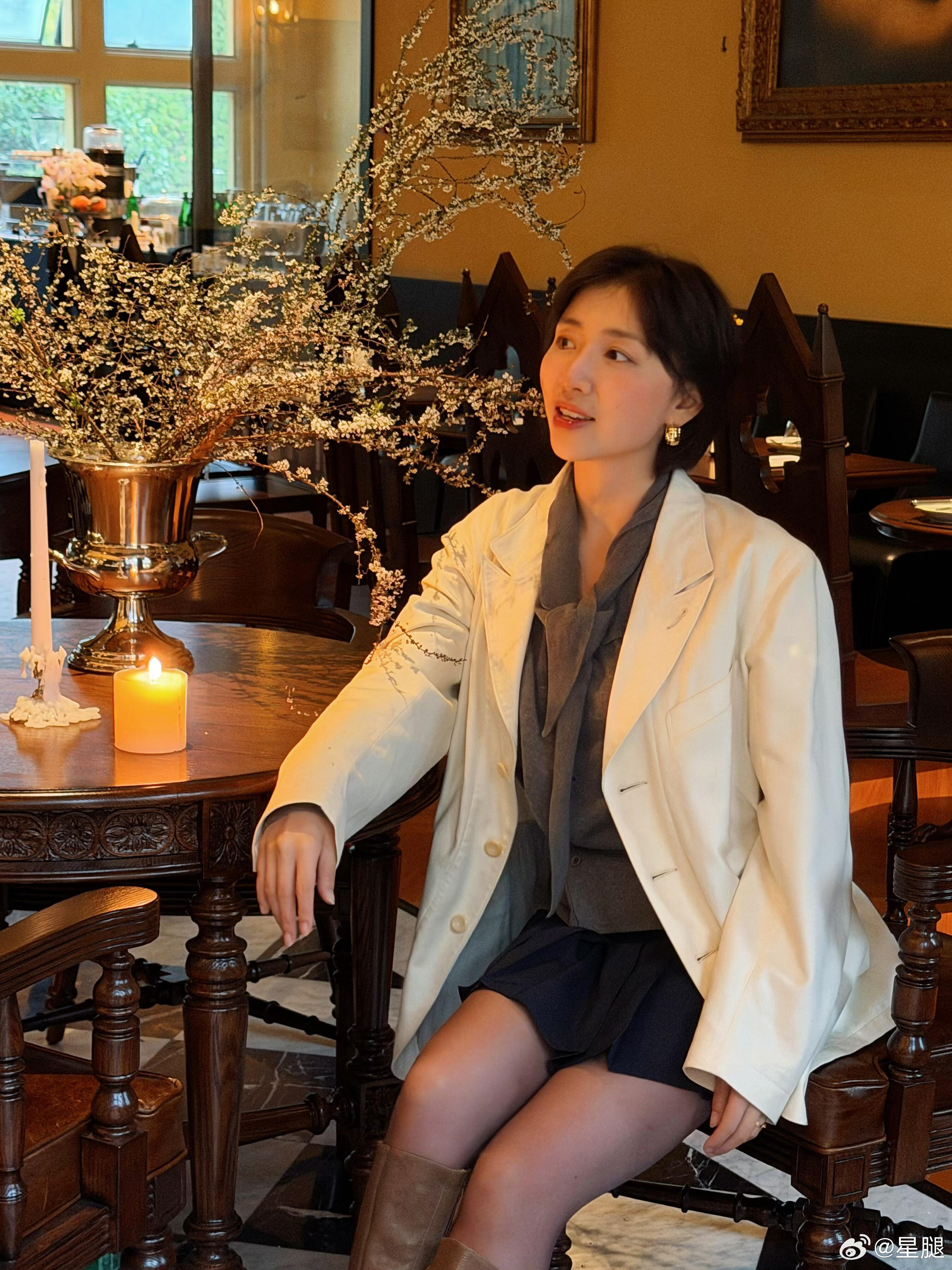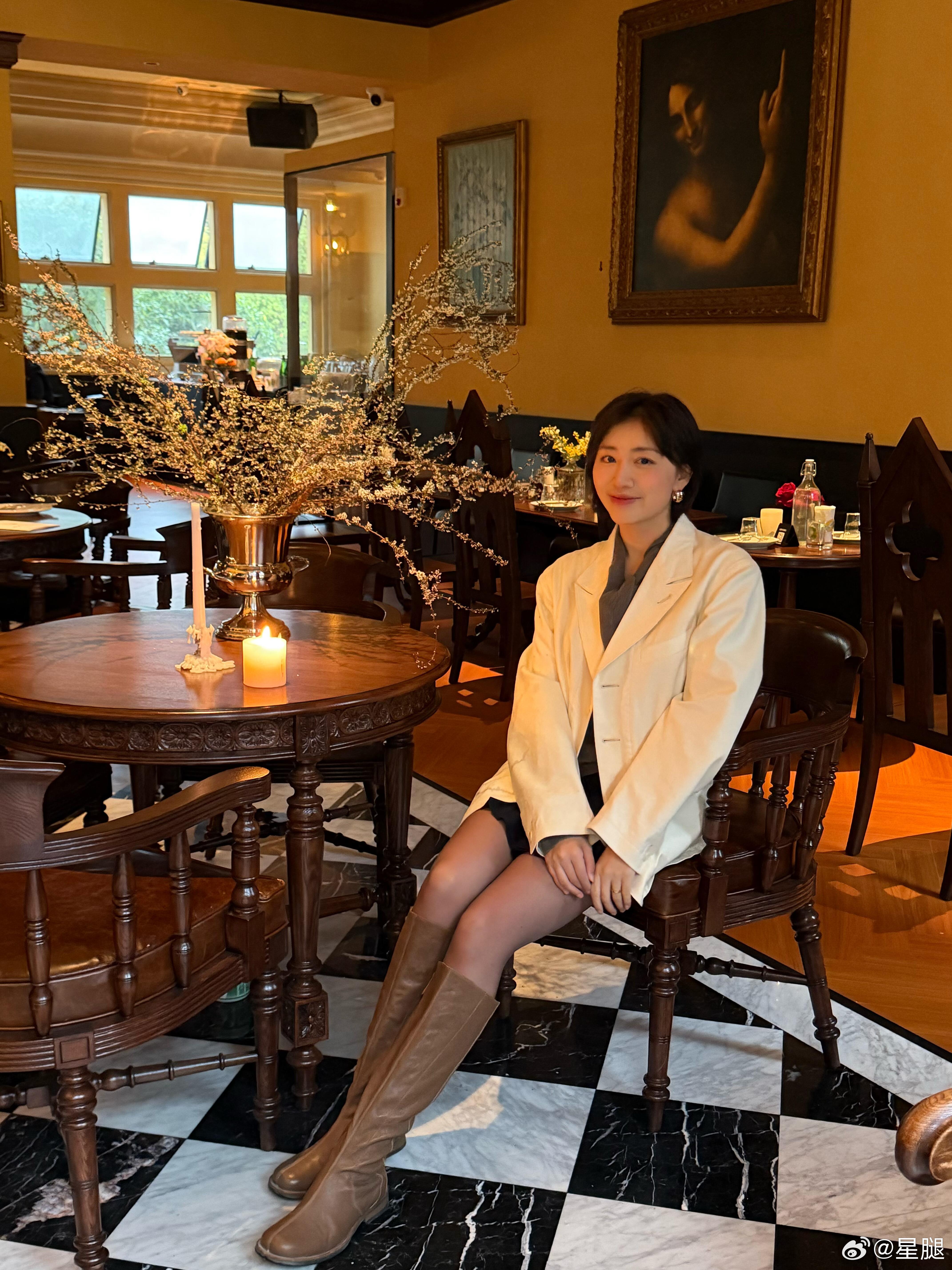 周捷 🍃 艺体操退役运动员,春季黑丝长靴搭配