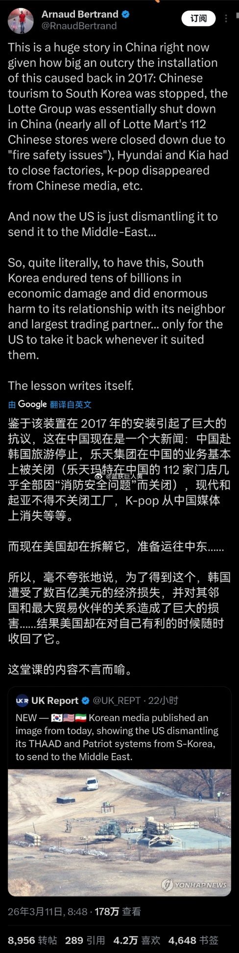 美国拆除部署在韩国的萨德,外网热帖冷嘲热讽“韩国竹篮打水一场空”