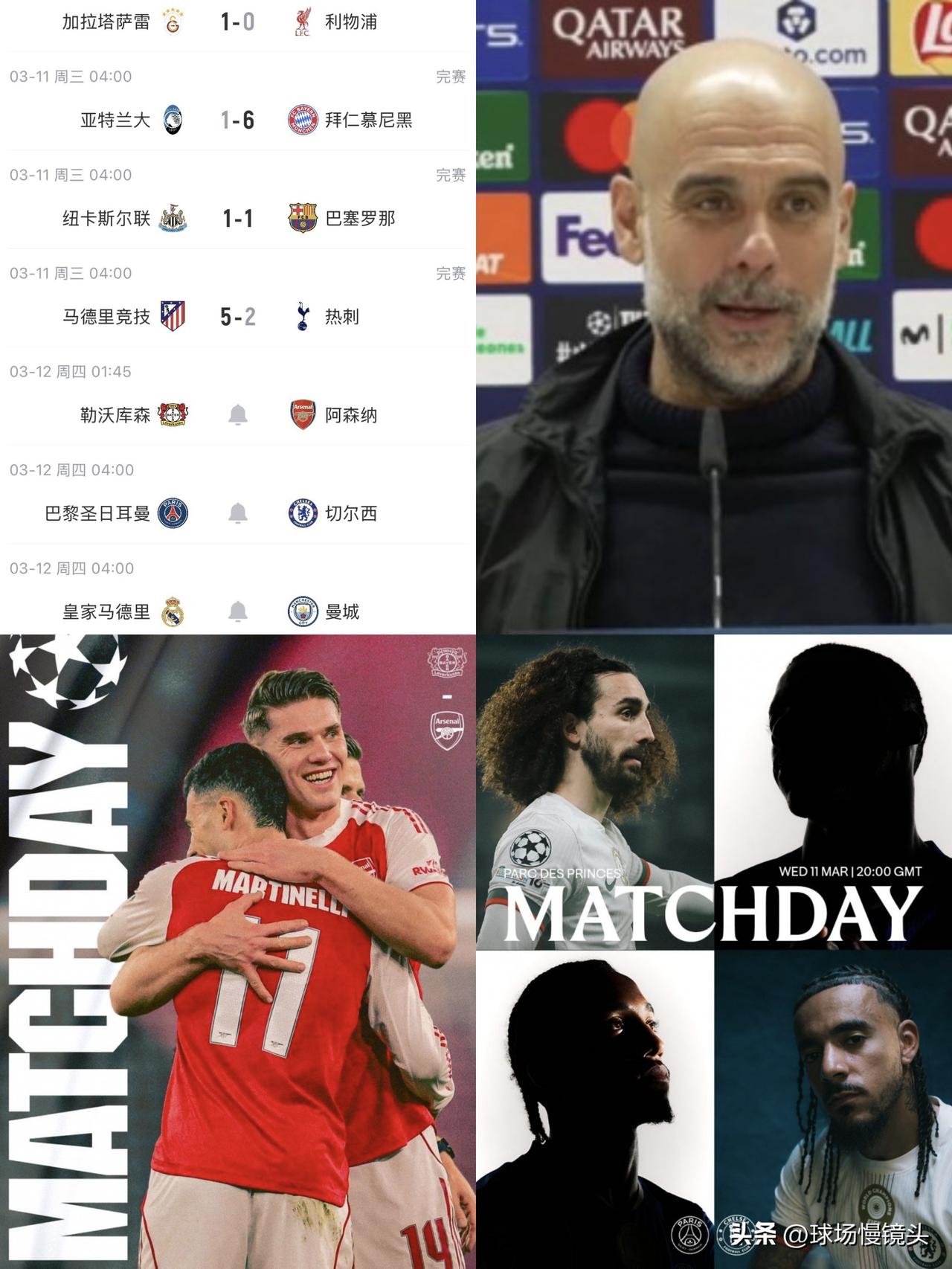 欧冠1/8首回合,第二日,4大看点—— 1,挽回丟失的脸面 英超三支球队热刺,利物浦,纽卡斯尔第一比赛日,把英超的脸面都丢近了,切尔西,曼城,阿森纳明天欧冠目标为英超挽回所有颜面! 2,皇马姆巴佩,贝林厄姆,阿尔瓦罗等7大主力,伤了整条中轴线,看皇马二哥维尼休斯如何带领皇马在逆境中翻盘?还是瓜迪奥拉抓住机会,首次伯纳乌虐菜皇马? 3,阿森纳尽显冠军本色,如果前20分钟,勒沃库森顶不住,可能是一场大溃败!勒沃库森唯一的战术就是铁桶阵,主场保平! 4,世俱杯巴黎就被切尔西打花,只要切尔西能锁死巴黎边锋,高位压迫+侵略性防守,打乱巴黎节奏,估计又是世俱杯的结果! 新年爱好打卡皇马 曼城 欧冠 阿森纳 切尔西