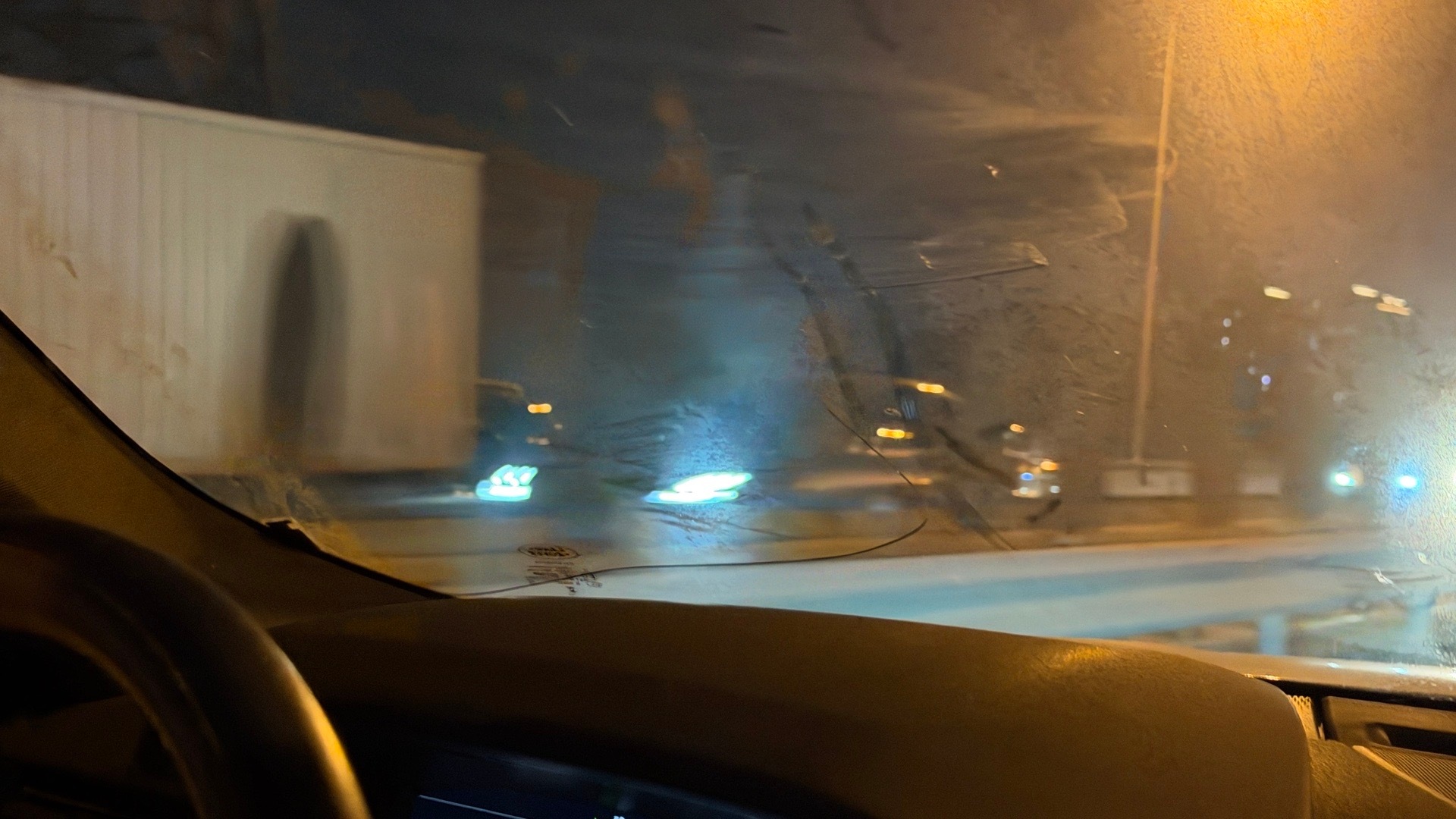路上崩了个大石子儿……给我前挡风崩裂了