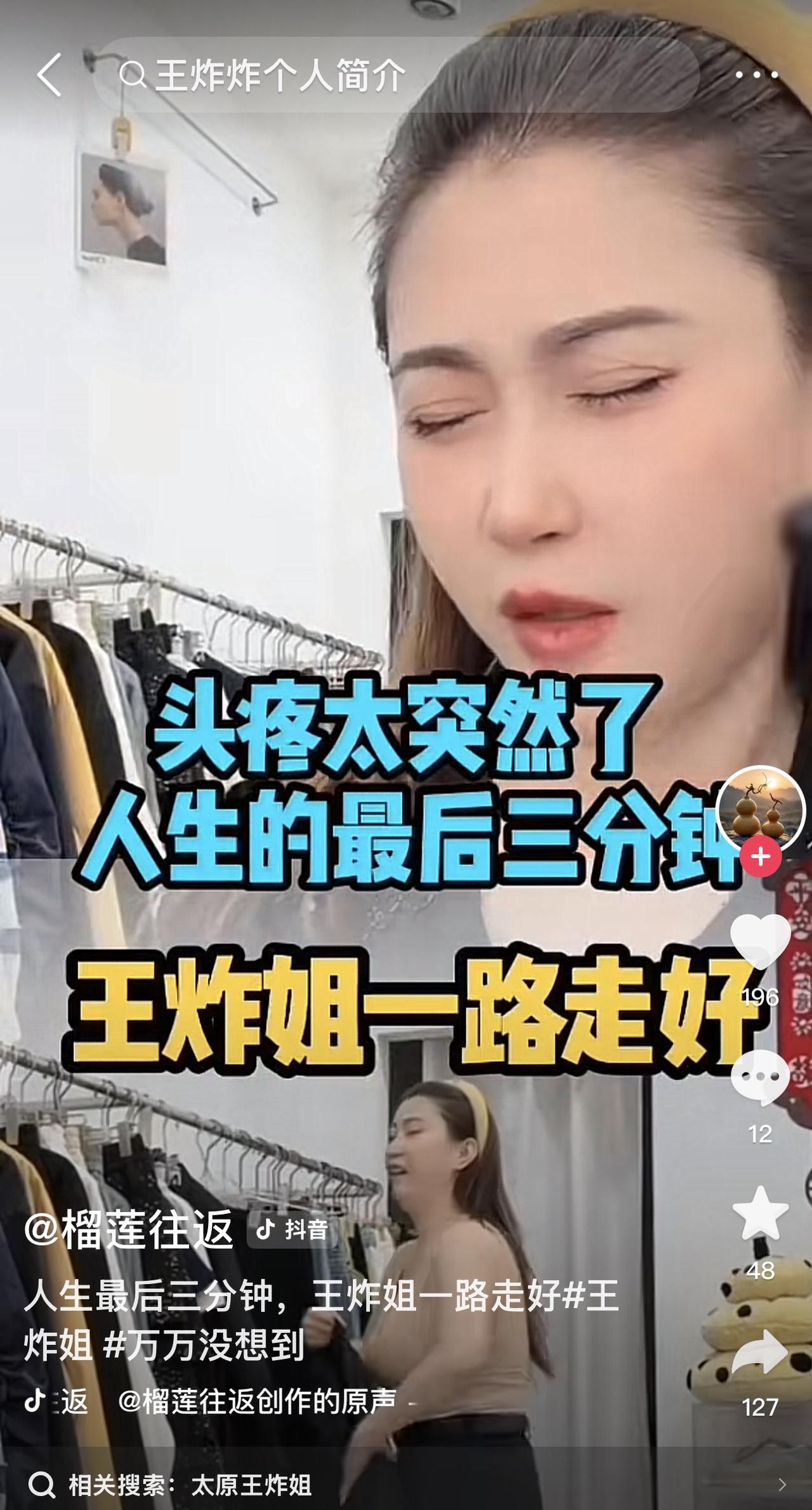 生命真的太脆弱了,39岁王炸的最后一场直播,看哭无数人。 上一秒还在热情介绍衣服,下一秒就捂着头痛苦呼救,让助理赶紧打120。谁也没想到,这句求助成了她留在世间的最后一句话。 她拼命直播,不过是想给孩子更好的生活,过年还带着娃开开心心去西安游玩,转眼就天人永隔,留下年幼的孩子再也没有妈妈。 我们总以为年轻就能扛,能熬就能多赚点,却忘了健康才是一切的本钱。多少人打着奋斗的旗号透支身体,最后倒在追梦的路上。 钱永远赚不完,但生命只有一次,别等失去才后悔。比起出人头地,平安健康地陪在家人身边,才是最踏实的幸福。