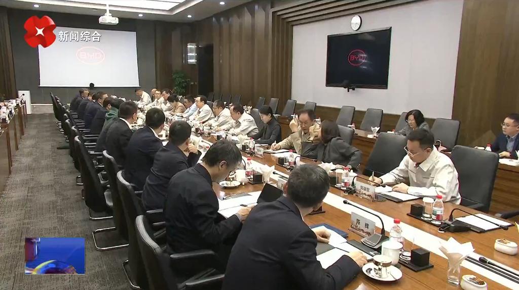 3月9日,比亚迪股份有限公司董事长兼总裁王传福在深圳总部接待来自西安的考察。