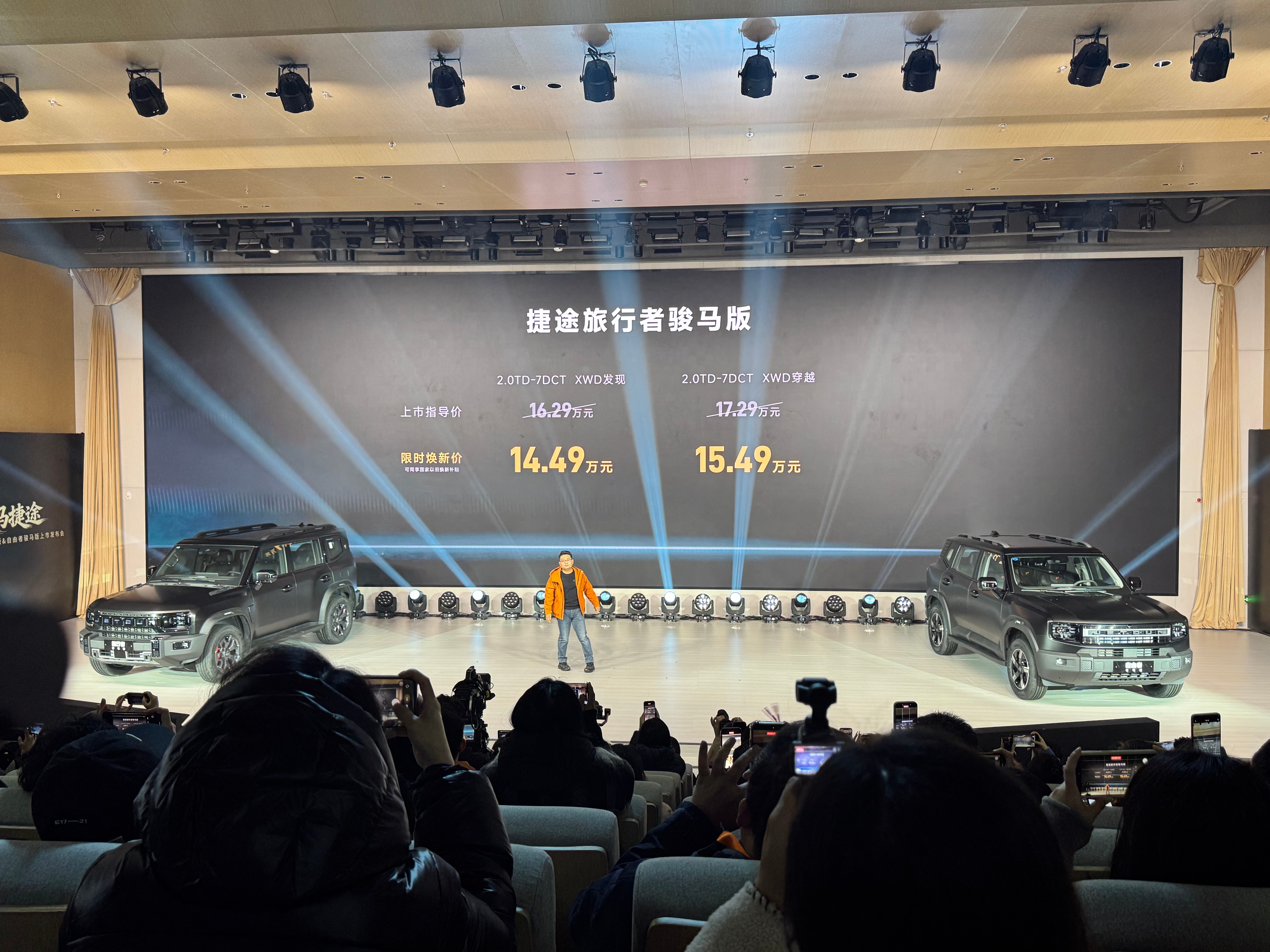 捷途旅行者骏马版:2.0t+7dct xwd两个配置14.49万 XWD 发现智能四驱/影武黑涂装/L2辅助驾驶/全景大天窗主副驾加热/头等舱副驾/理想大沙发/电吸门8155芯片/15.6中控大屏/256色氛围灯/360全景影像+180透明底盘700mm涉水深度15.49万 XWD 穿越索尼12喇叭/主驾腰部电调+按摩/主副驾加热通风记忆座椅/50w无线充PM2.5新风/L2辅助/APA泊车辅助/盲区监测捷途自由者骏马版:两个配置1.5t+7dct10.79万 探索影武黑涂装/18寸轮毂/全景天窗/车顶行李架/侧踏板/四叶草大灯12.8中控/10.25液晶仪表/8155车机芯片/8扬声器主副驾电调/冷暖扶手箱/360+180影像11.78万 发现L2辅助驾驶/15.6中控/前排双层隔音玻璃/二排私隐玻璃/64色氛围灯副驾腿托/前排座椅加热通风记忆/二排座椅靠背/电尾门/50w无线充教授觉得要是只是为了个越野外观的话,那么11.78万自由者的发现配置就很够用了,发现的配置有15.6中控+前排加热通风,同时还有双层玻璃、冰箱啥都有了,配置是很够用的。需要2.0t+xwd越野+超强车身+8155芯片的,那么无脑选14.49万的XWD 发现即可。要是需要智驾才考虑15.49万的穿越配置,教授觉得这价格比坦克300香多了,300是图腾一般的存在,捷途作为挑战者,给得足够多了。