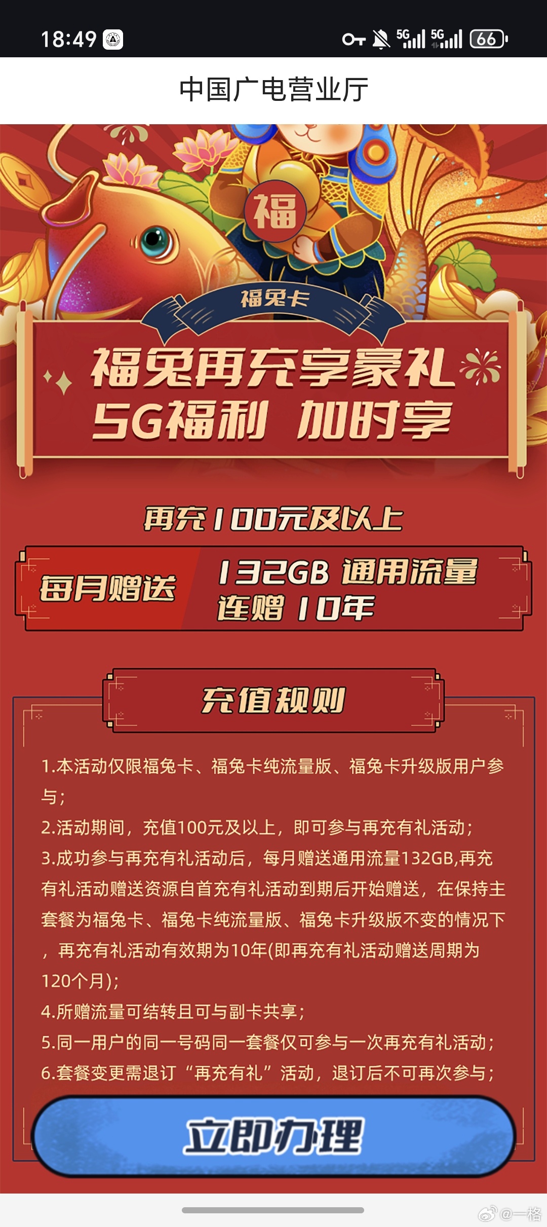广电卡充 100 就每月送 132GB 流量,送 10 年虽然很多地方信号不好网络很差,但它实在给的…