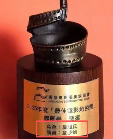 这个奖杯颇有有趣,还特意标明了章子怡在电影中饰演的角色——詹周氏。