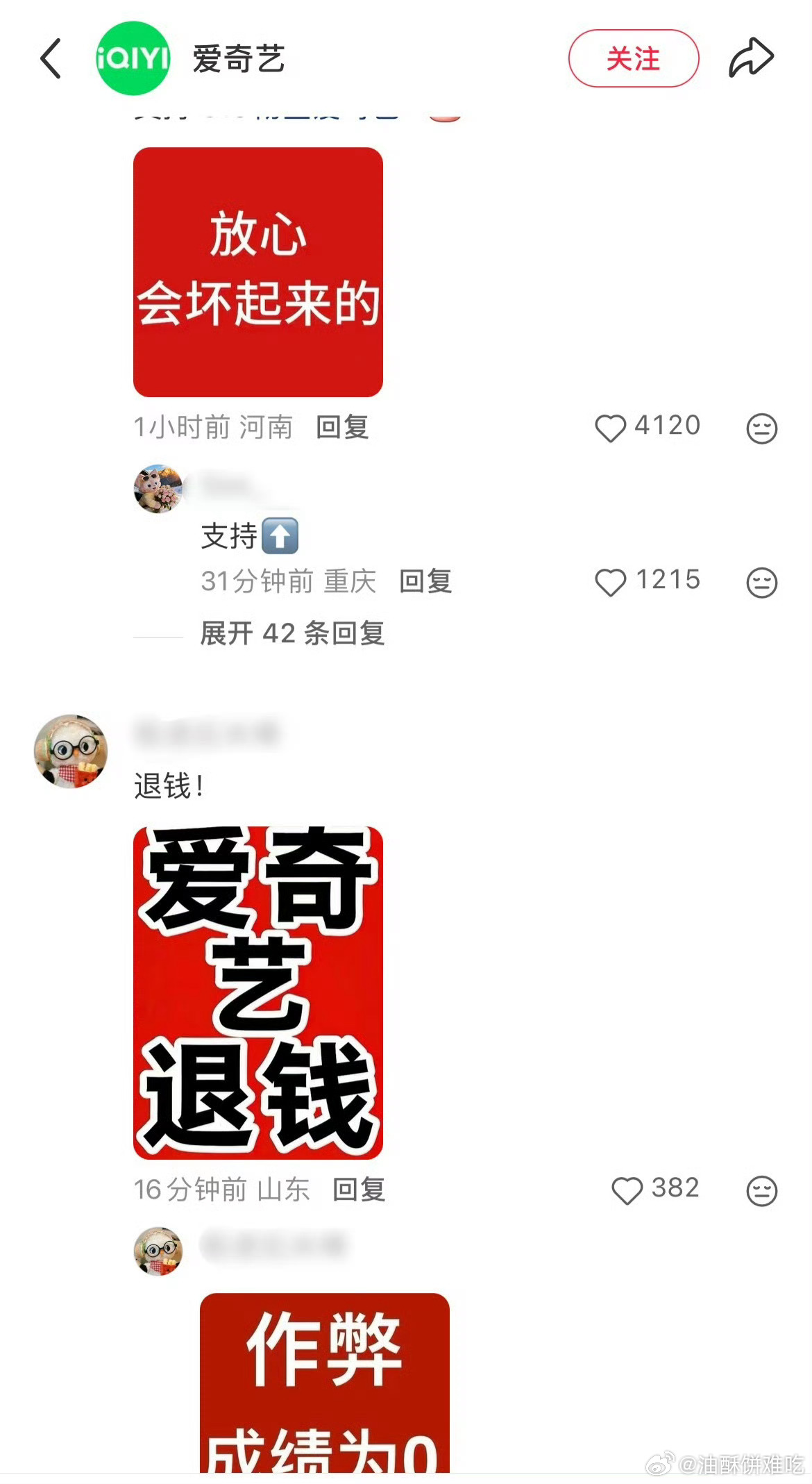 不止微博爱奇艺官博翻车,🍠爱奇艺官号同样翻车,根本控不住